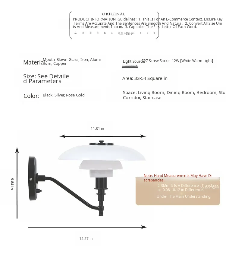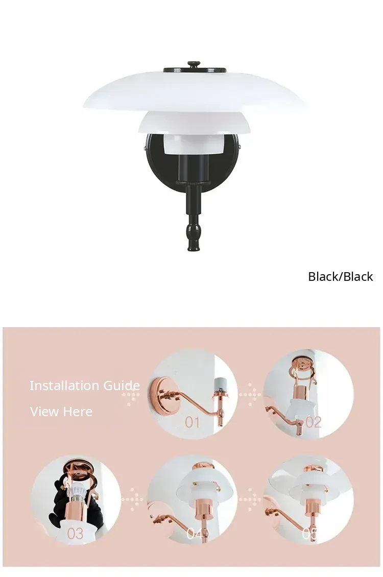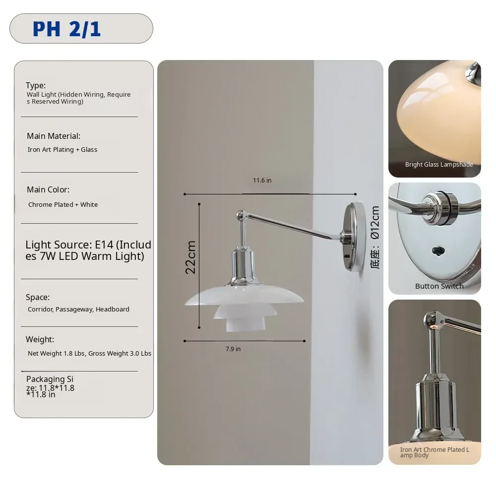 Classic PH3 Wall Lamp by Danish Designer - Nordic Minimalist Glass Wall Light for Bedroom, Headboard, Accent Wall, and Showroom