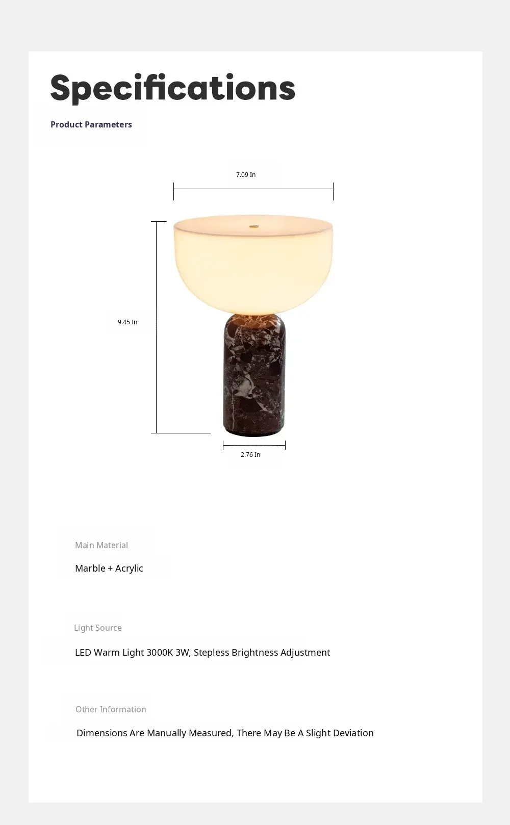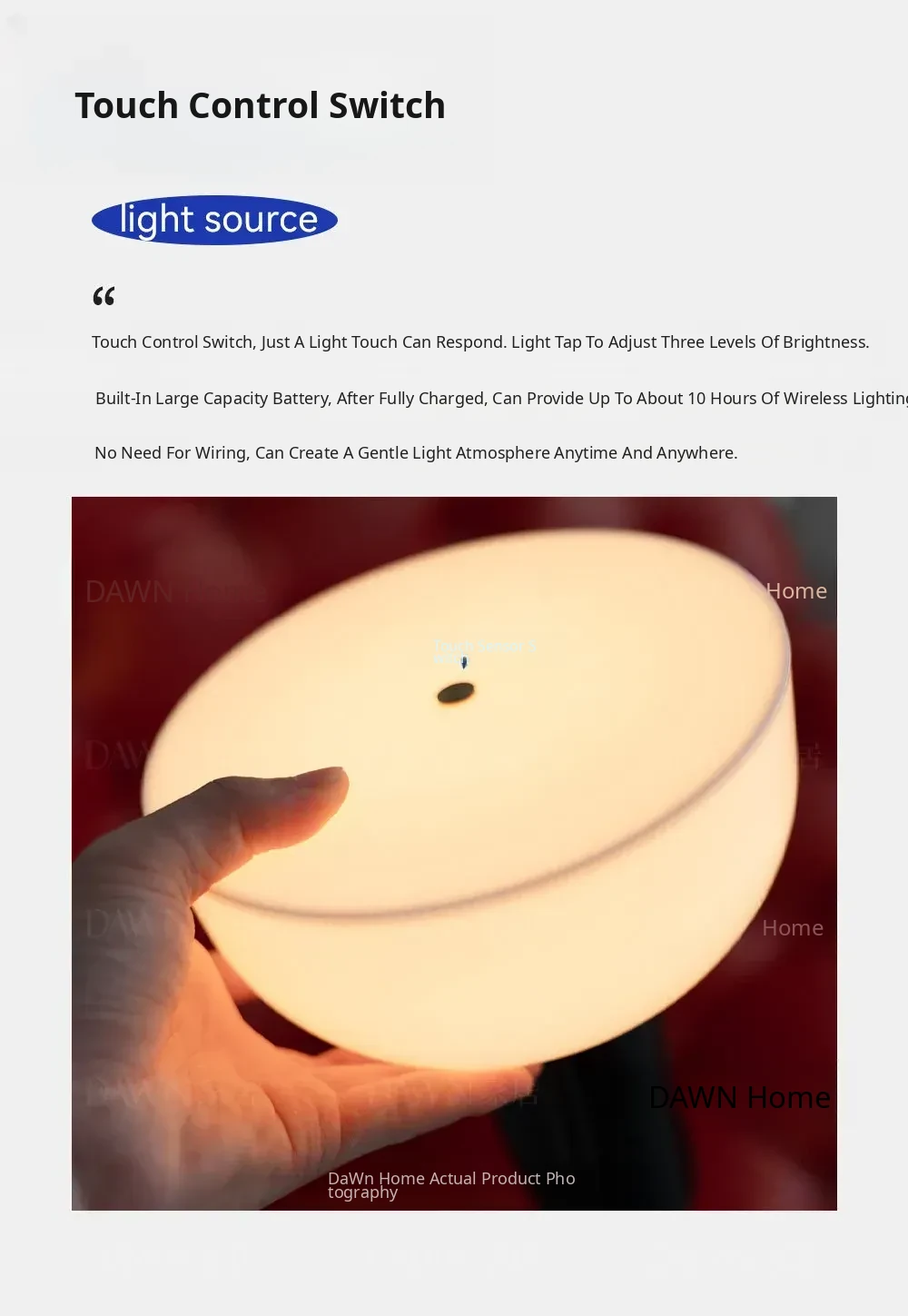 Jazz White 7.09in*9.45in Warm Light Rechargeable Touch Model
