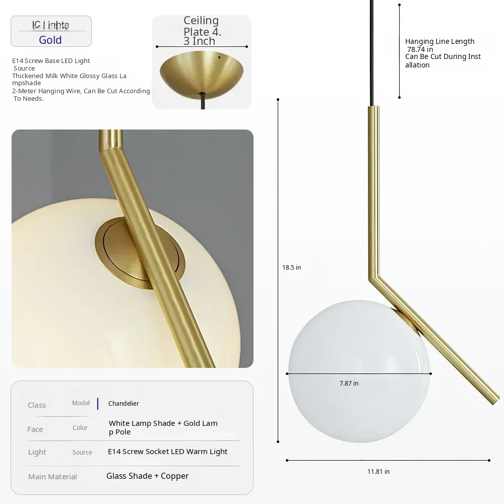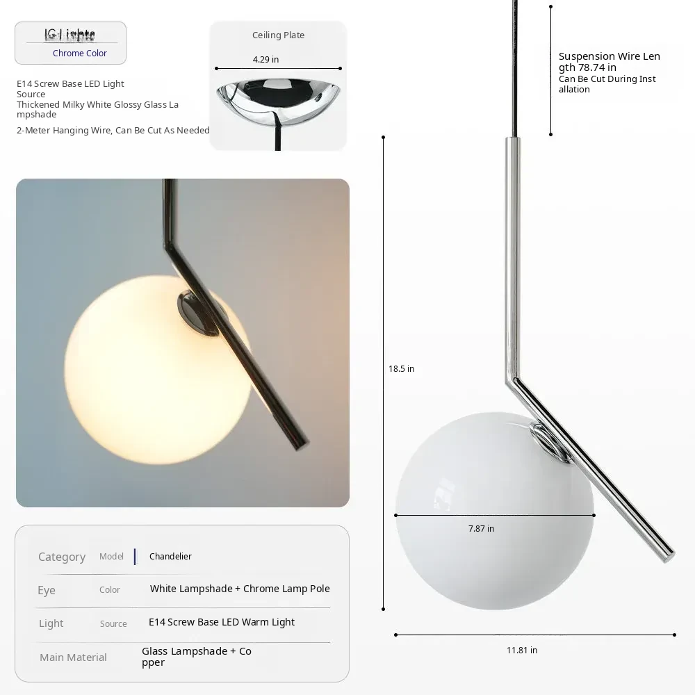 DAWN Home Minimalist Glass Sphere Pendant Light - Scandinavian Design for Bedroom, Dining Table, and Cozy Atmosphere