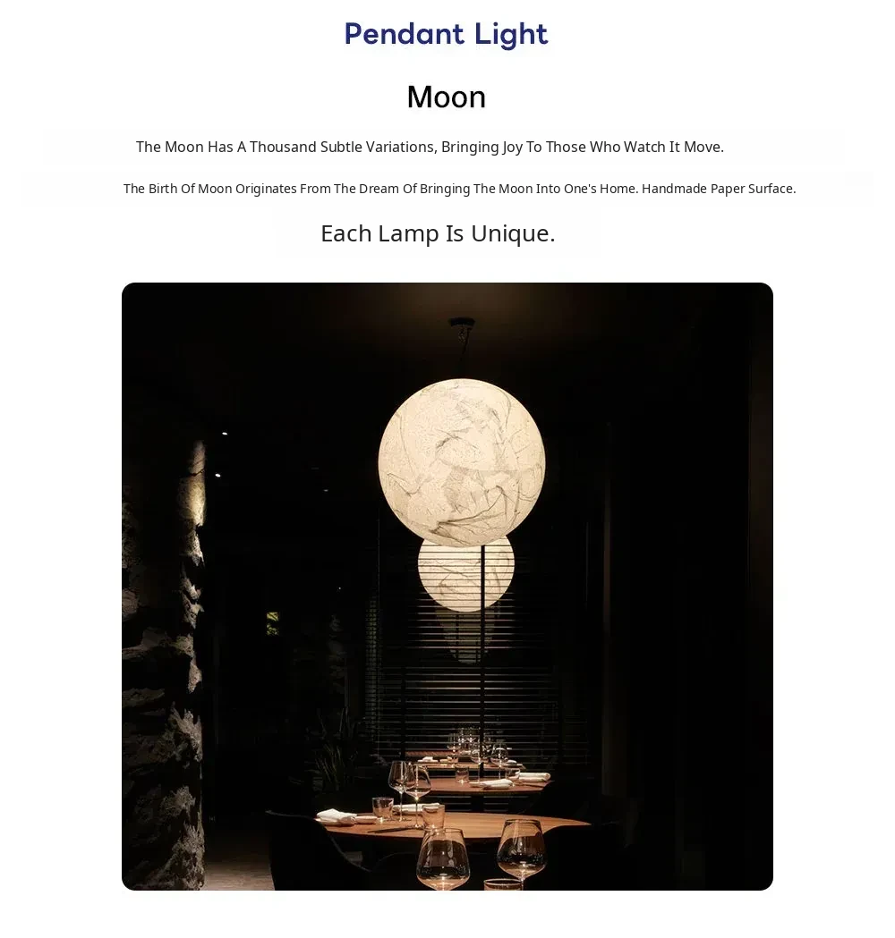 DAWN Home Modern Minimalist Moon Pendant Light – Stylish Japanese Wabi-Sabi Inspired Hollow Moon Lamp for Bedrooms and Loft Spaces, Perfect for Creating a Serene Atmosphere
