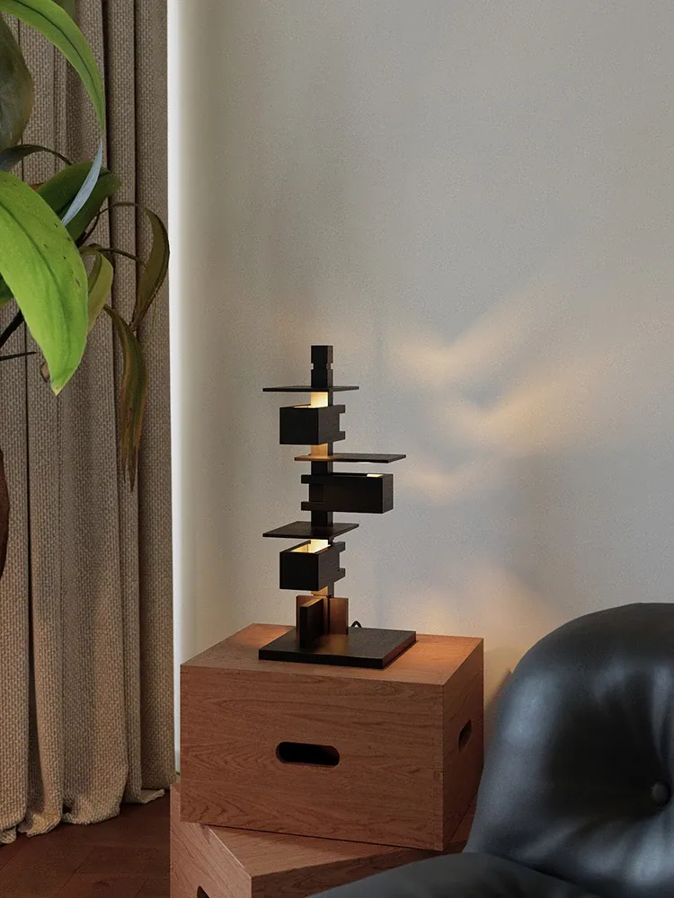 DAWN Home Retro Table Lamp - Elegant Designer Solid Wood Lamp for Luxury Living Room Décor and TV Stand Accent.