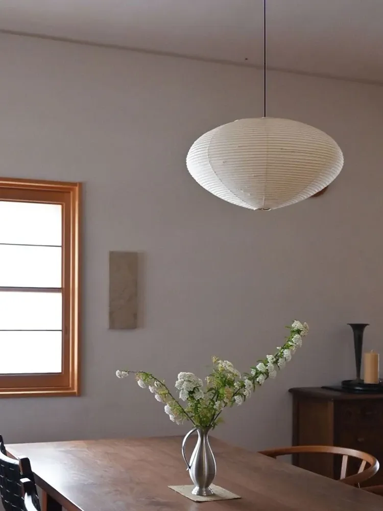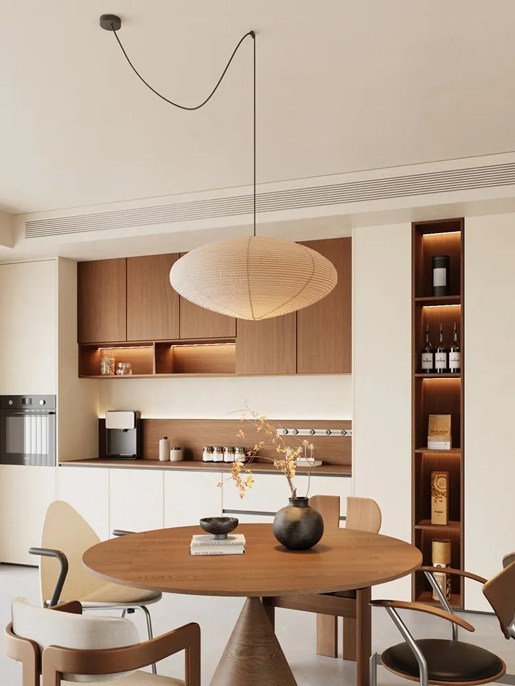 DAWN Home Round Dining Table Pendant Light Mover - Song Dynasty Aesthetic Vintage Art for Restaurant and Tea Room, Inspired by Yoko Yamamoto's Paper Lantern Design