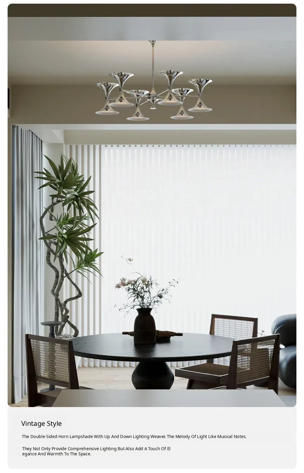 DAWN Home/Original Bauhaus Style Horn Pendant Lamp - Retro Mid-Century Modern Space-Age Metallic Light Fixture for Living Room, Bedroom, and Study