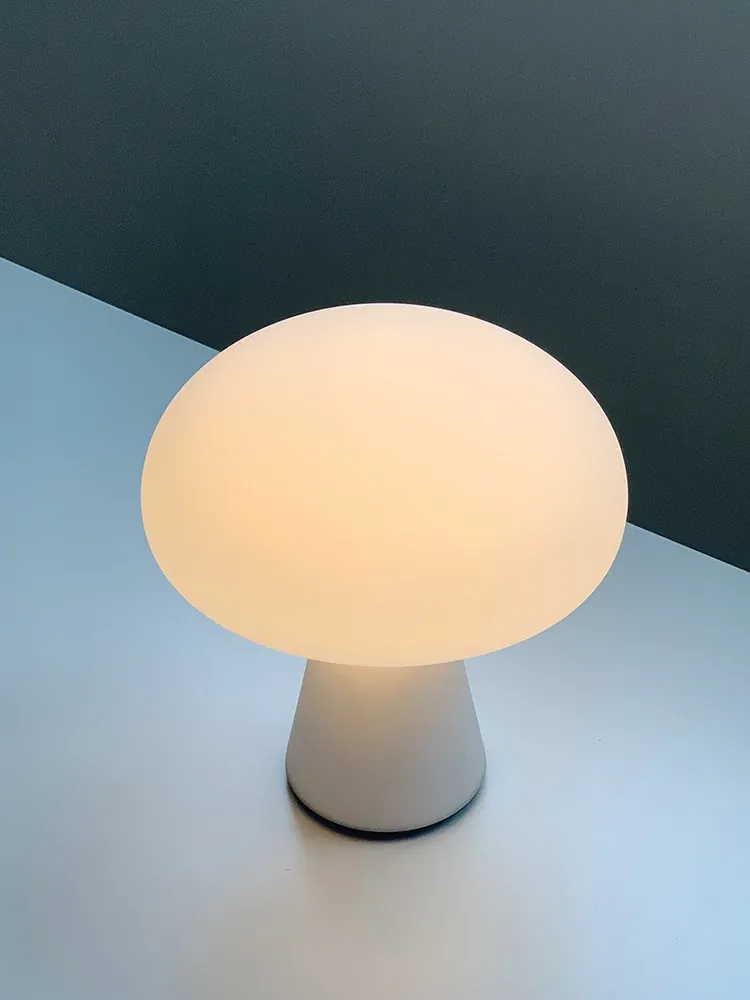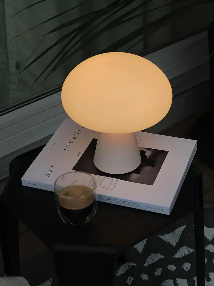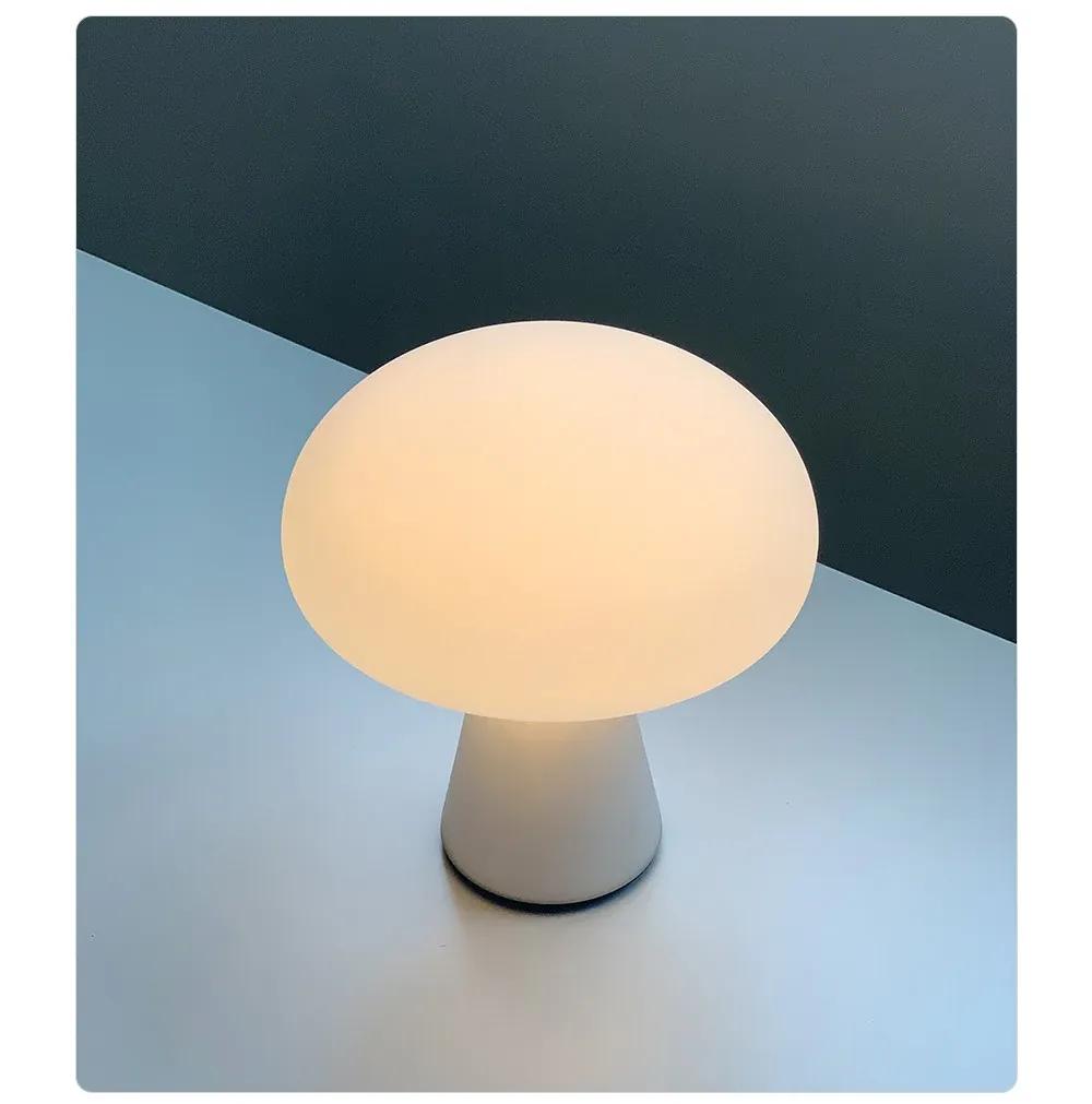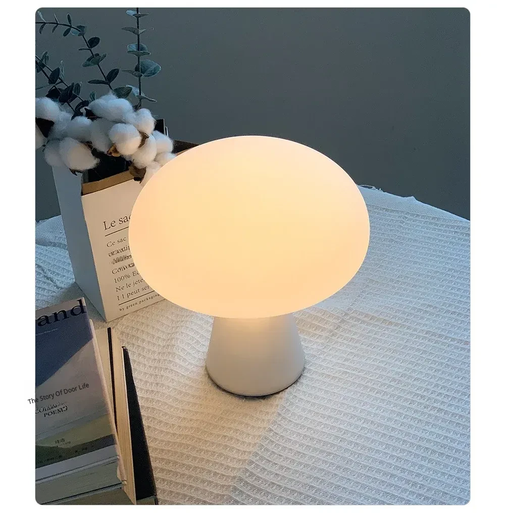 DAWN Nordic Minimalist Rechargeable Dimmable Glass Mushroom Table Lamp - Perfect for Bedroom, Study, or Bedside Ambiance Lighting