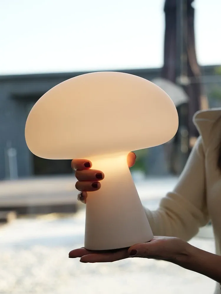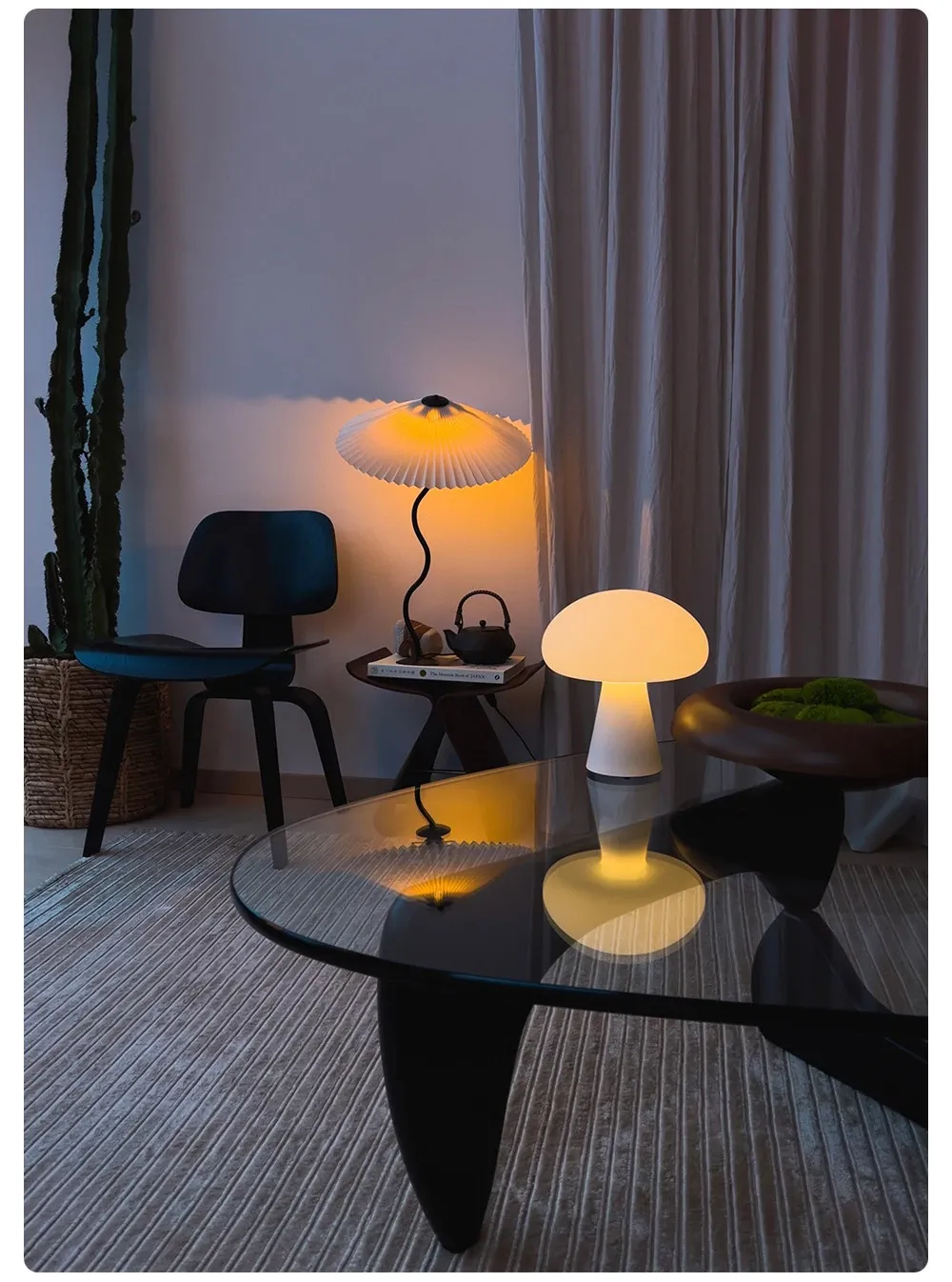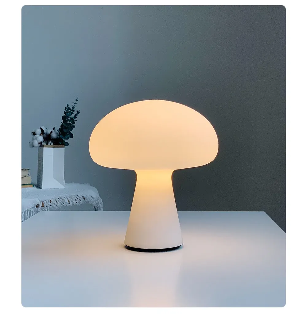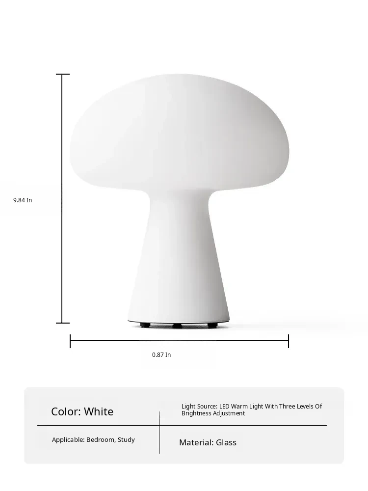 DAWN Nordic Minimalist Rechargeable Dimmable Glass Mushroom Table Lamp - Perfect for Bedroom, Study, or Bedside Ambiance Lighting