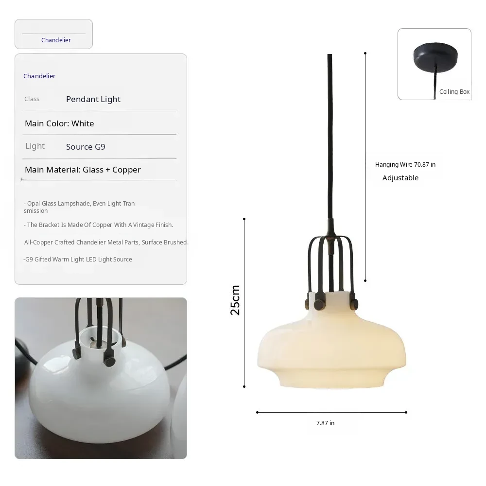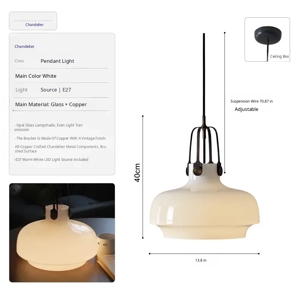 DAWN Vintage Danish Copenhagen Glass Pendant Light - French Style Retro Bar & Kitchen Ceiling Fixture for Home & Dining Room