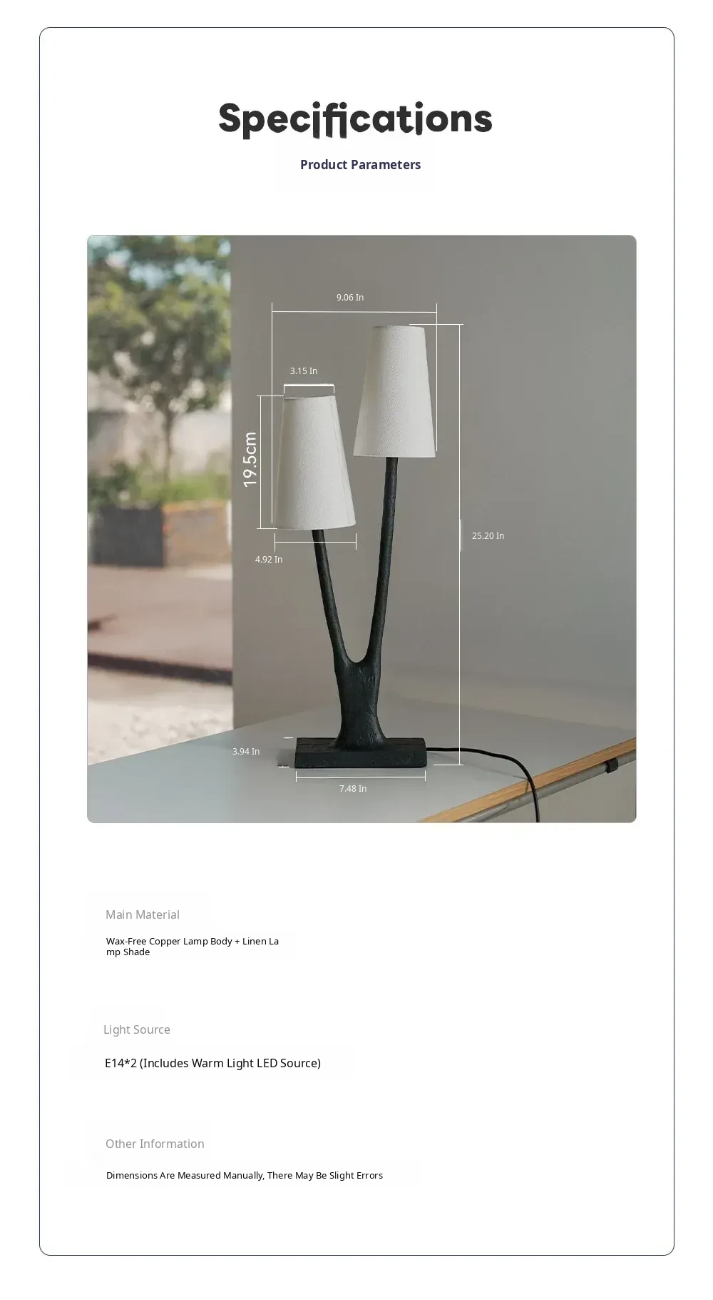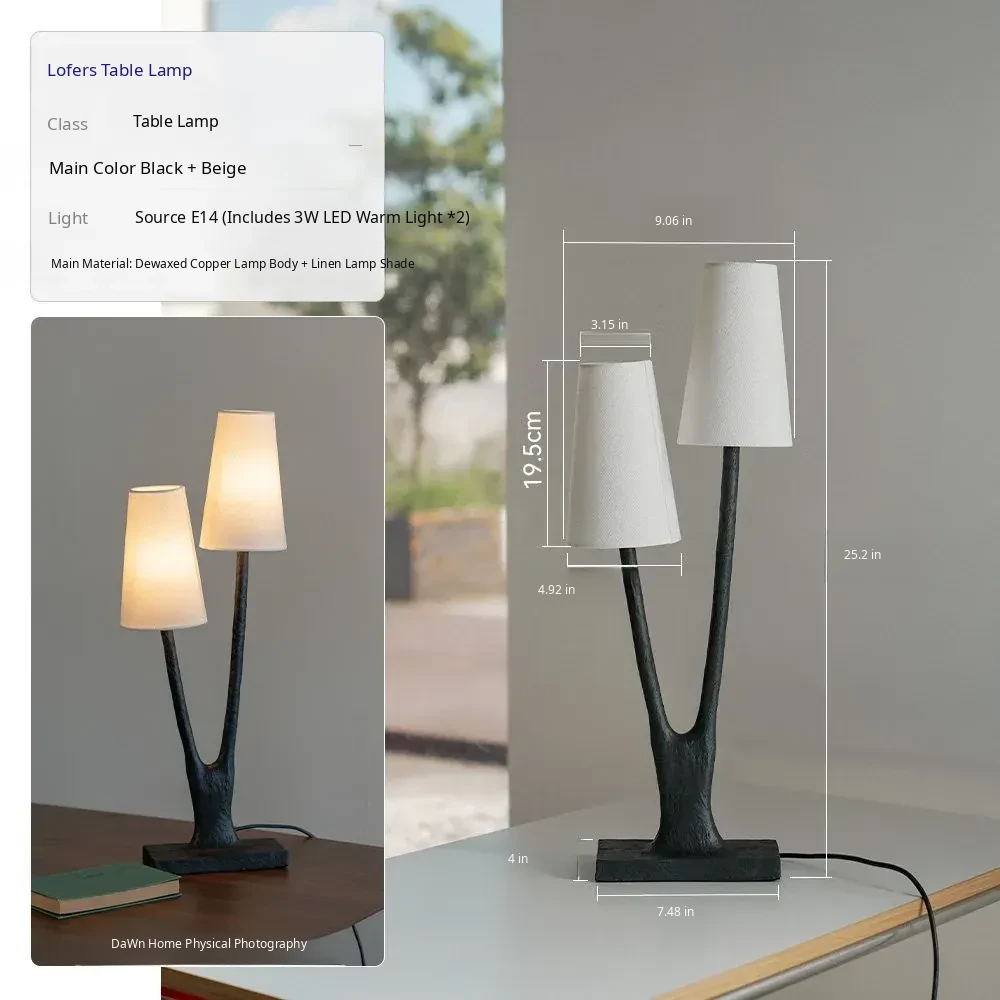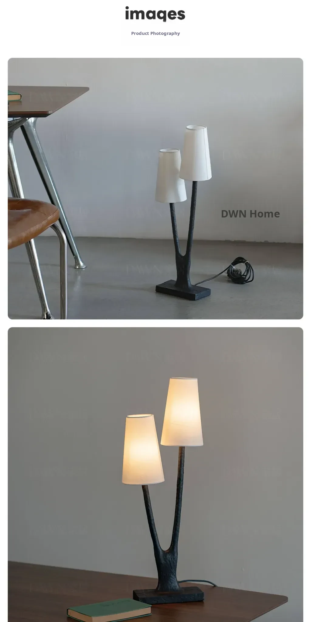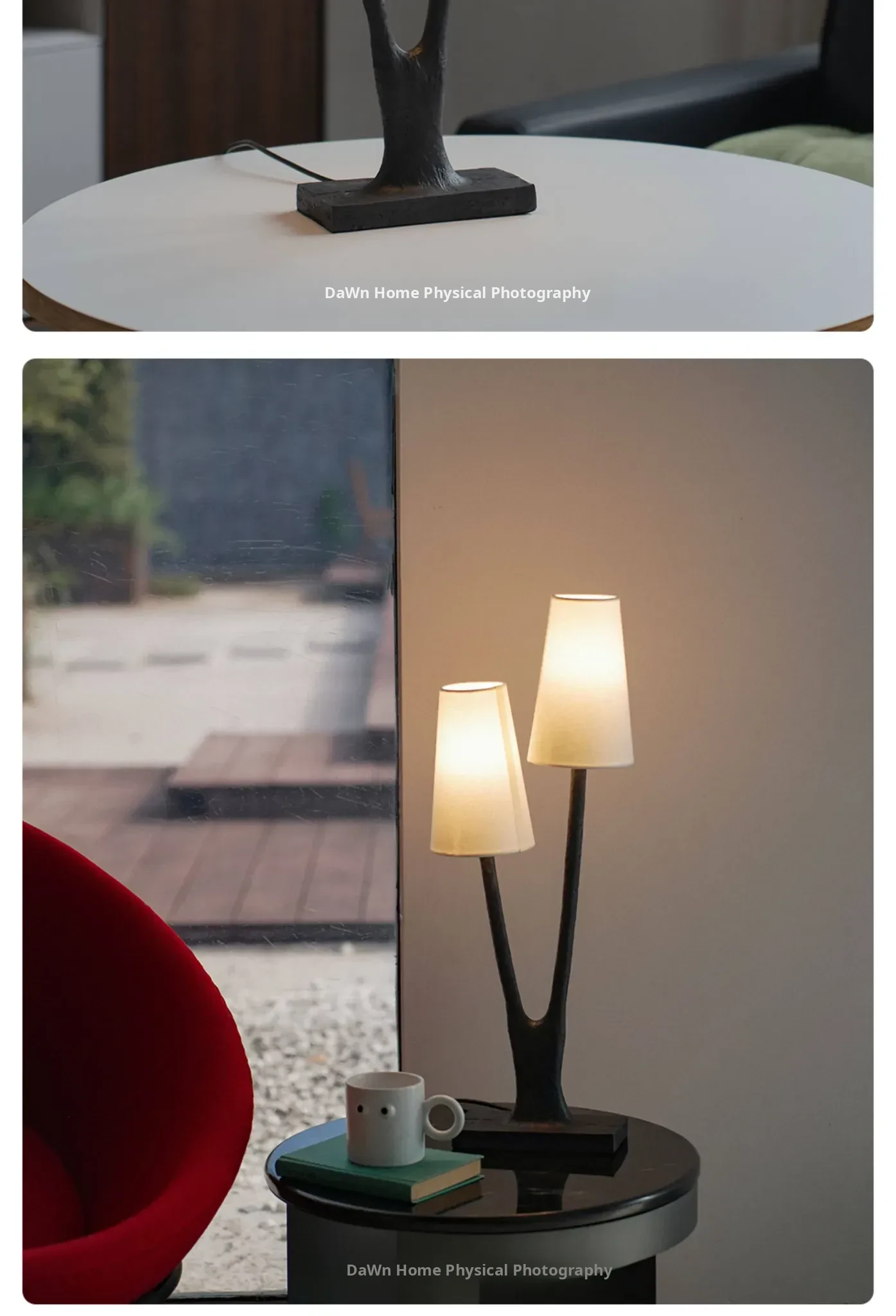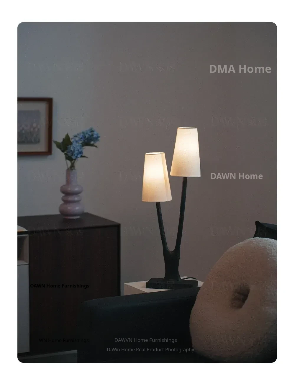Elegant Bamboo-Style Double-Branch Table Lamp for Bedroom and Living Room - Embrace the Vintage Wabi-Sabi Aesthetic with a Touch of Luxury