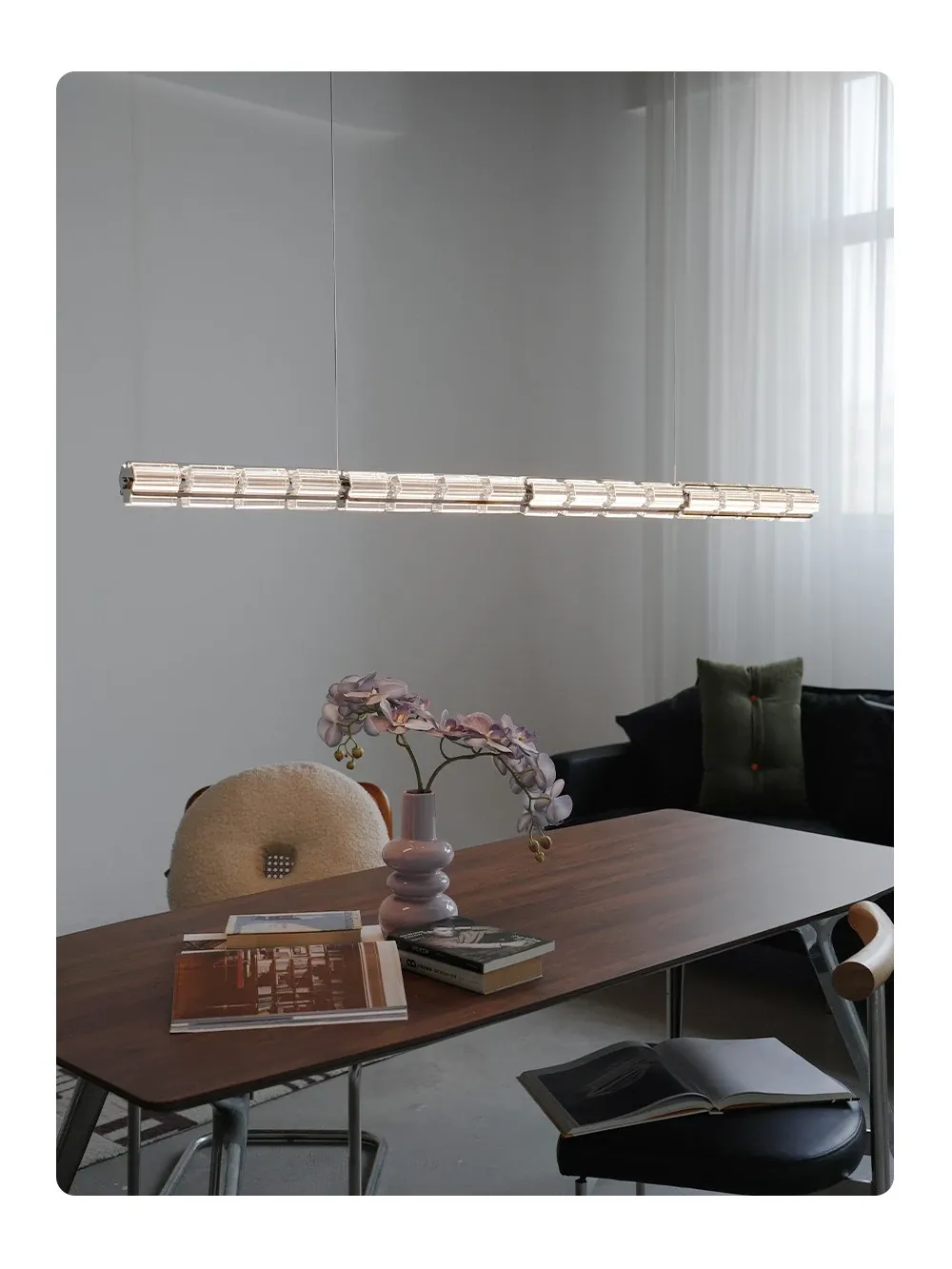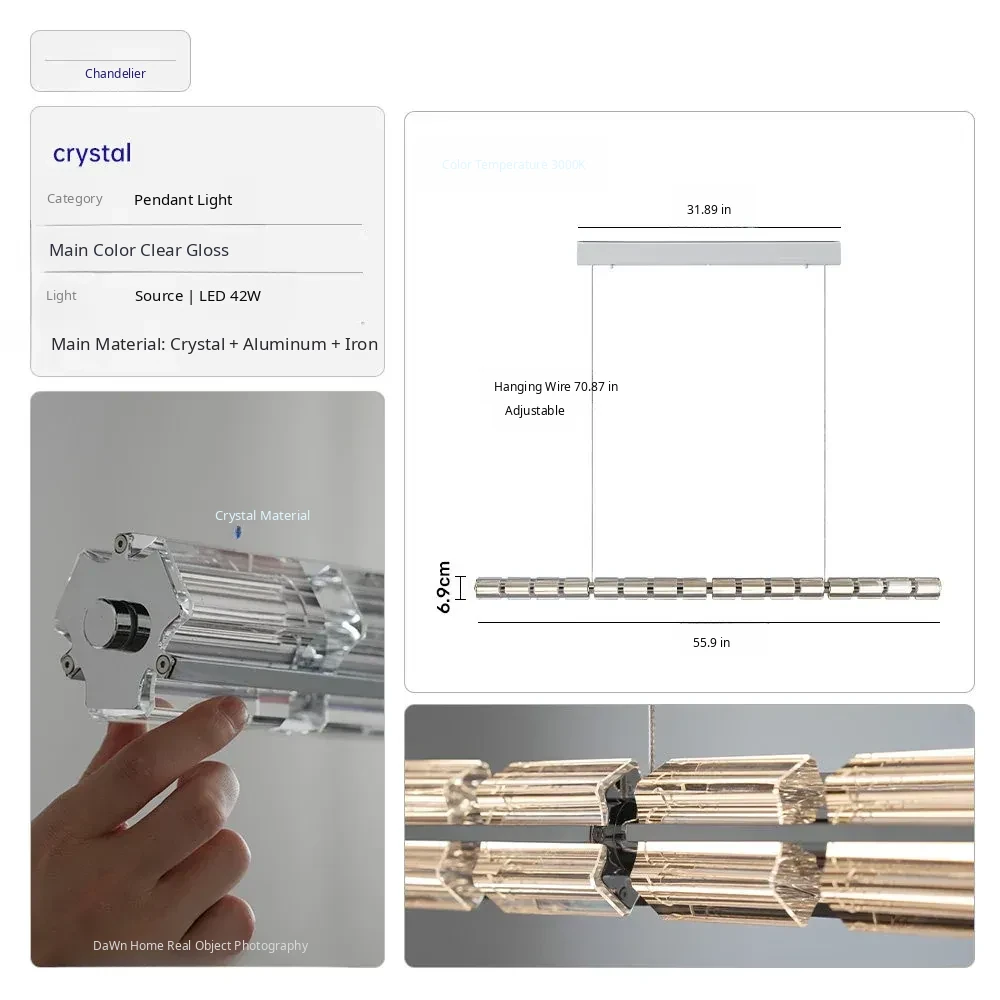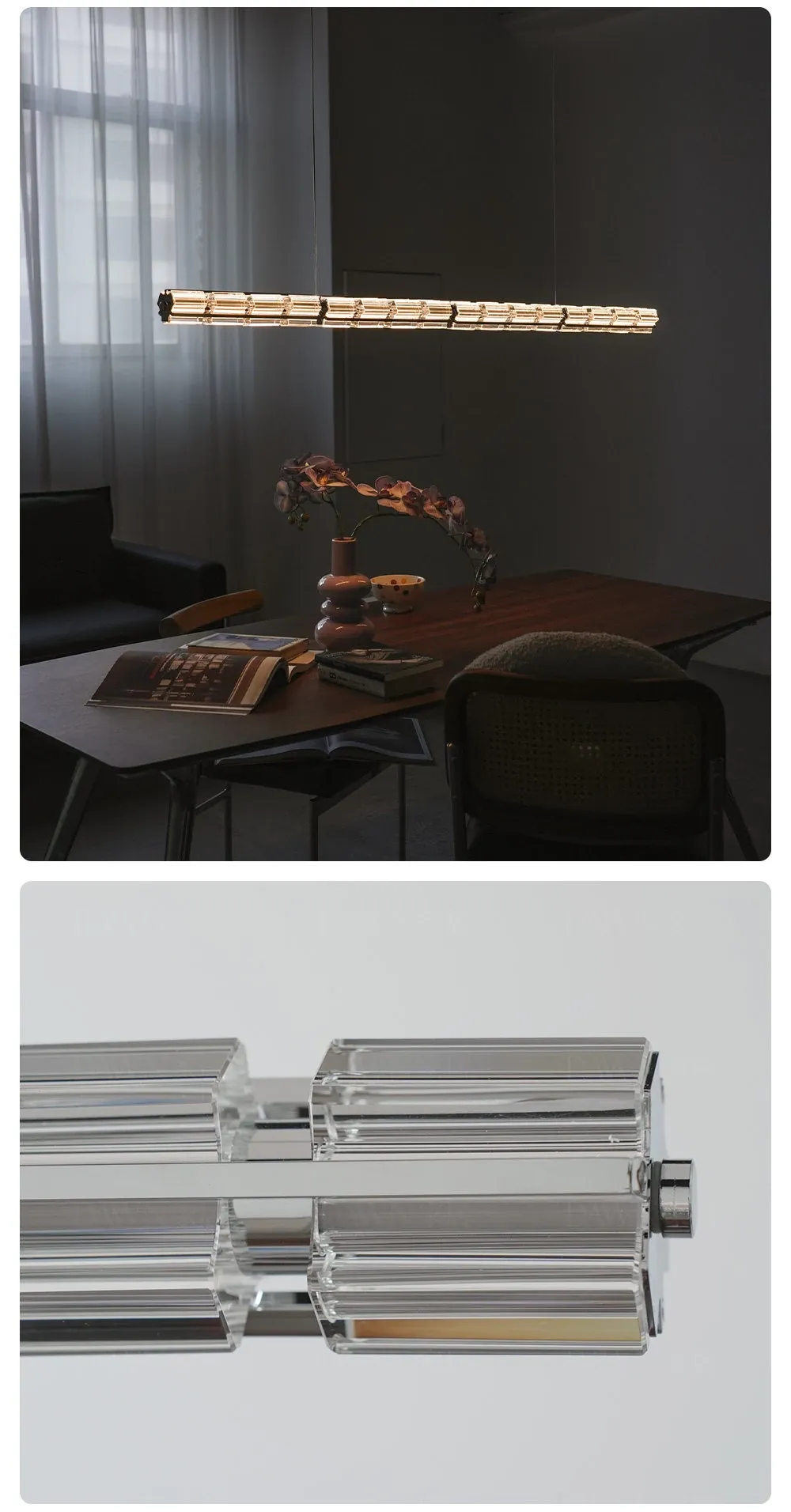 Italian Minimalist Designer Long Crystal Pendant Light for Restaurant Island Bar - High-End Luxury Modern Art Fixture