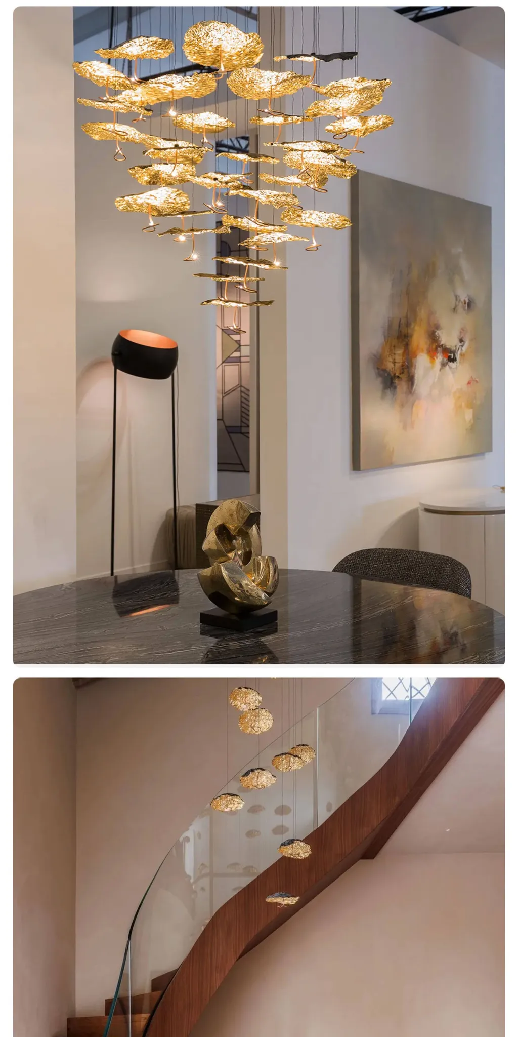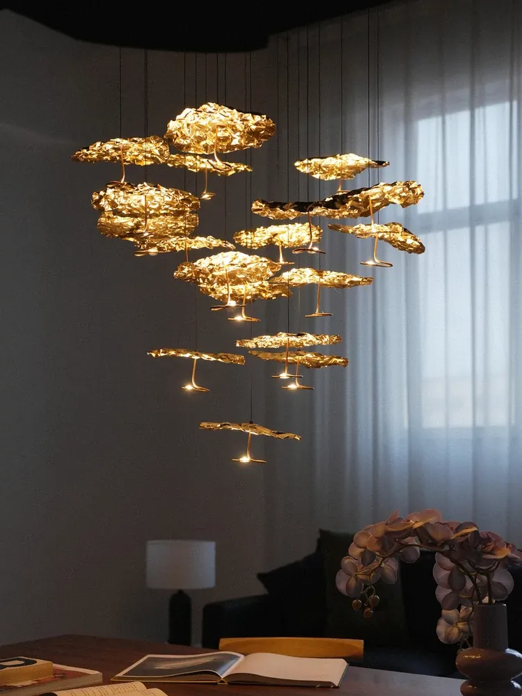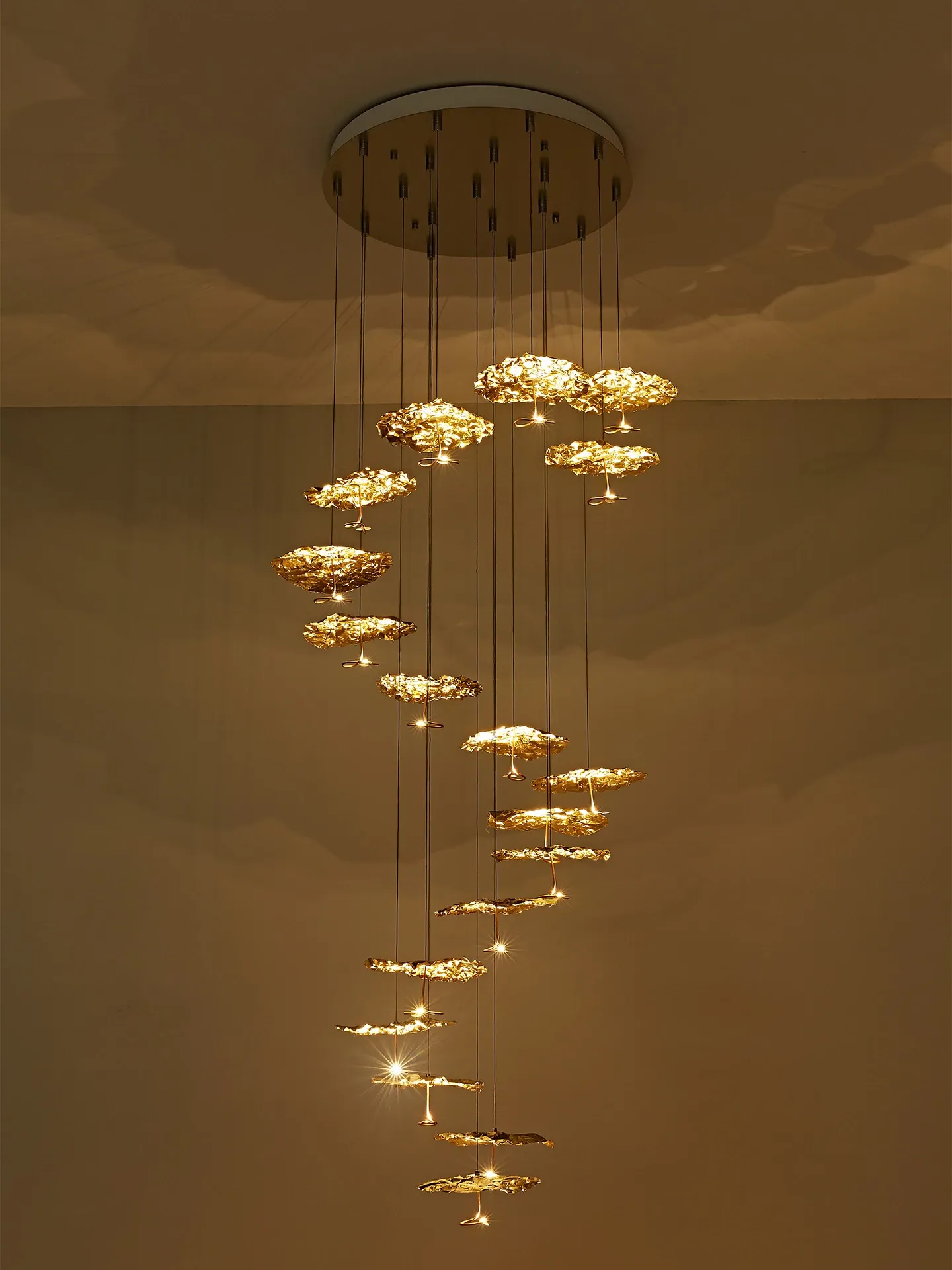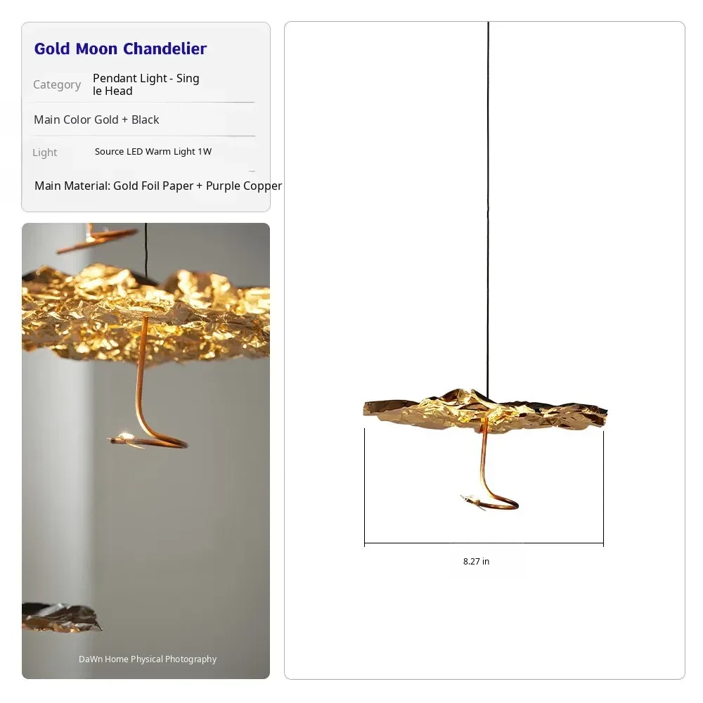 Italian SmithGold Moon Vintage Restaurant Chandelier - Elegant All-Copper Leaf Design for Staircases and Open Living Spaces