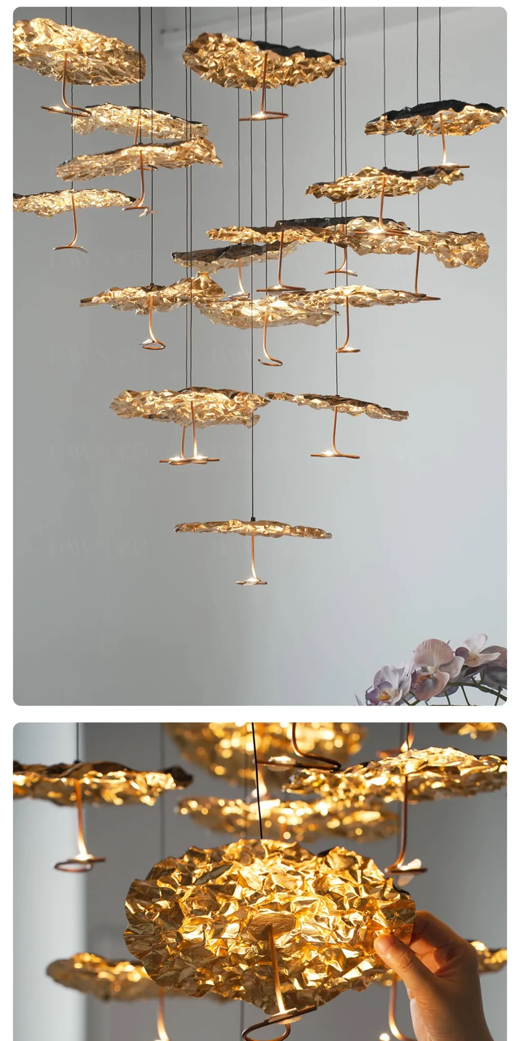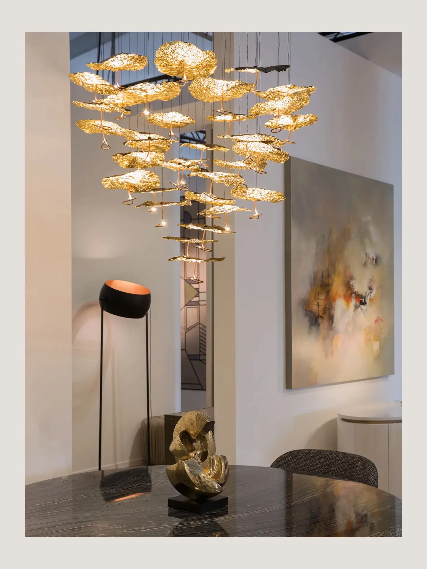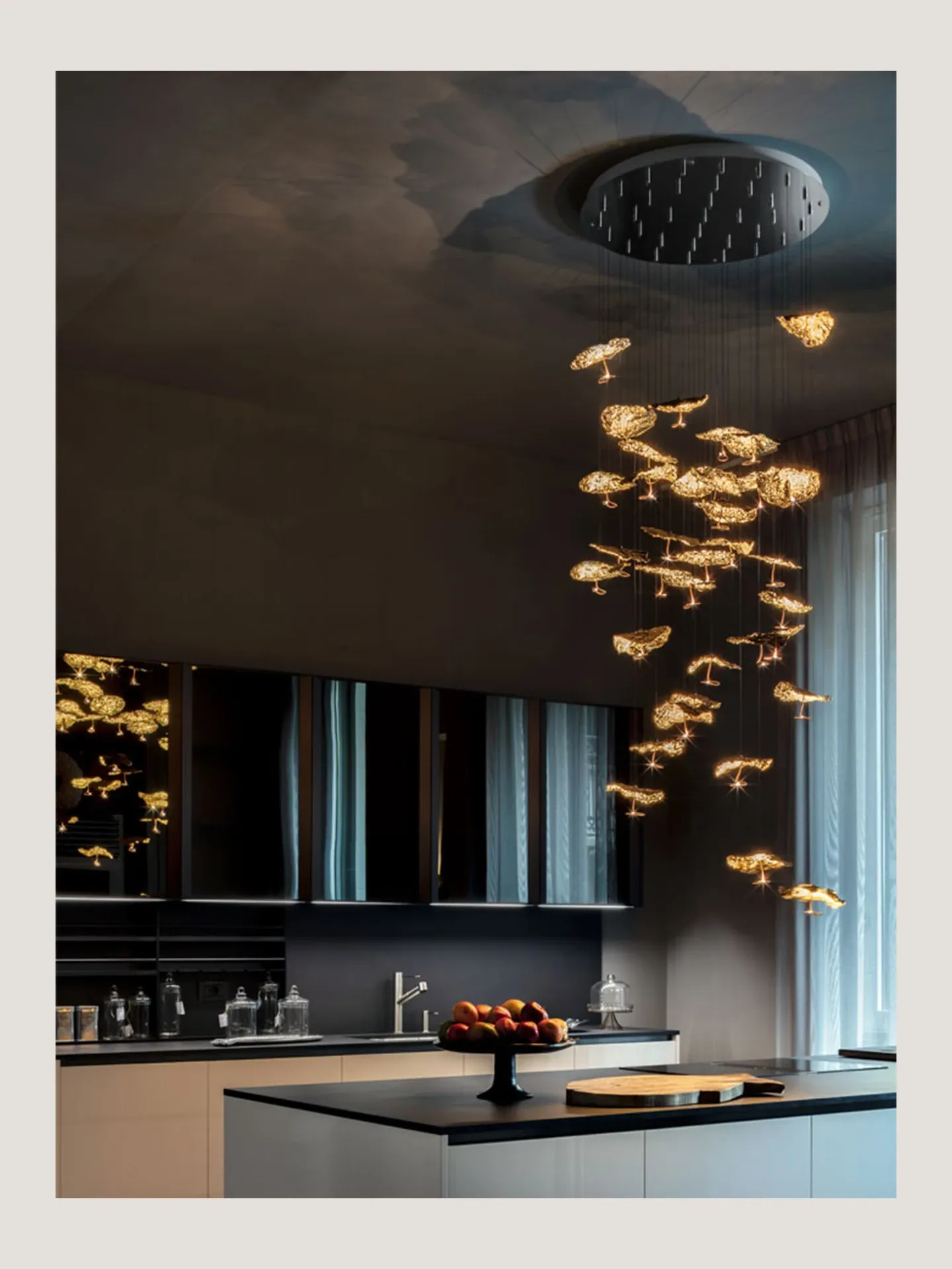 Italian SmithGold Moon Vintage Restaurant Chandelier - Elegant All-Copper Leaf Design for Staircases and Open Living Spaces