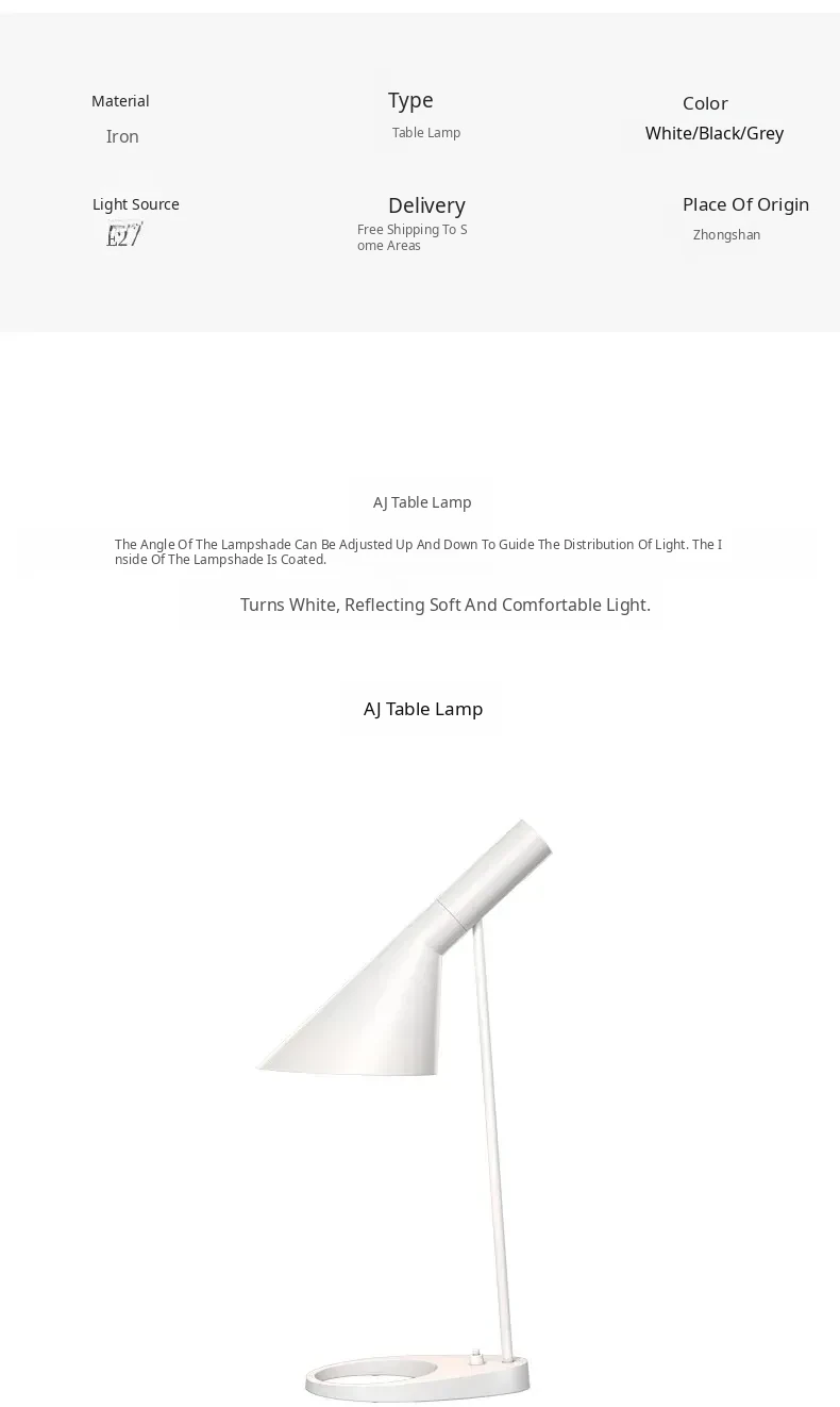 Modern Minimalist AJ Table Lamp - Nordic Creative Danish Design for Living Room, Bedroom, and Study - Perfect for Office and Reading