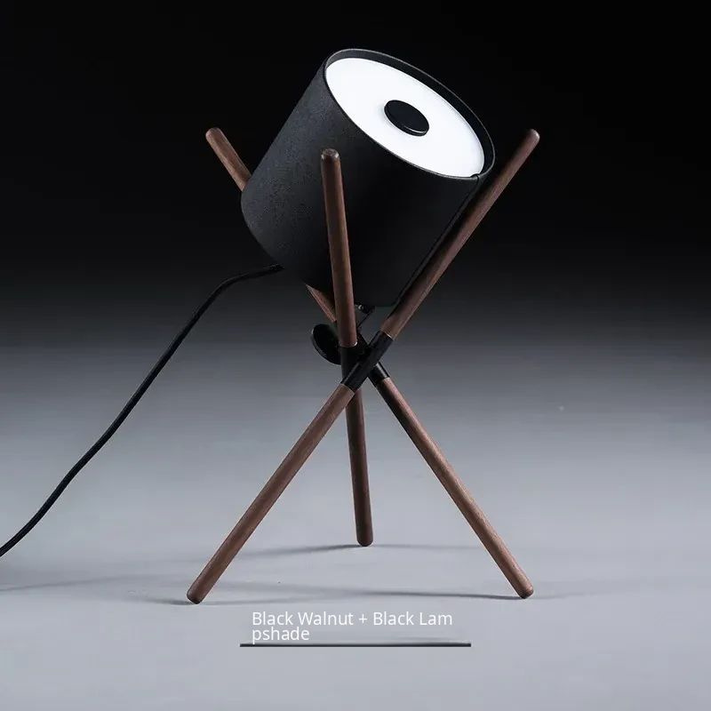 Nordic Modern Designer Table Lamp for Living Room, Villa Bedroom, and Study - Creative and Unique Black Walnut Wood Lighting Solution