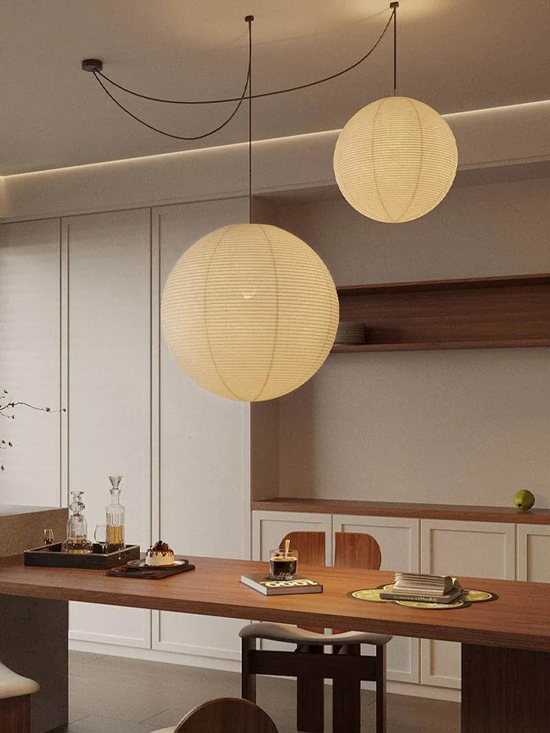 DAWN Home Creative Round Paper Pendant Light - Minimalist Vintage Style Chandelier for Dining Room, Bar, and Master Bedroom - Unique Design by Noguchi Yō! Perfect for a Modern Home Aesthetic!
