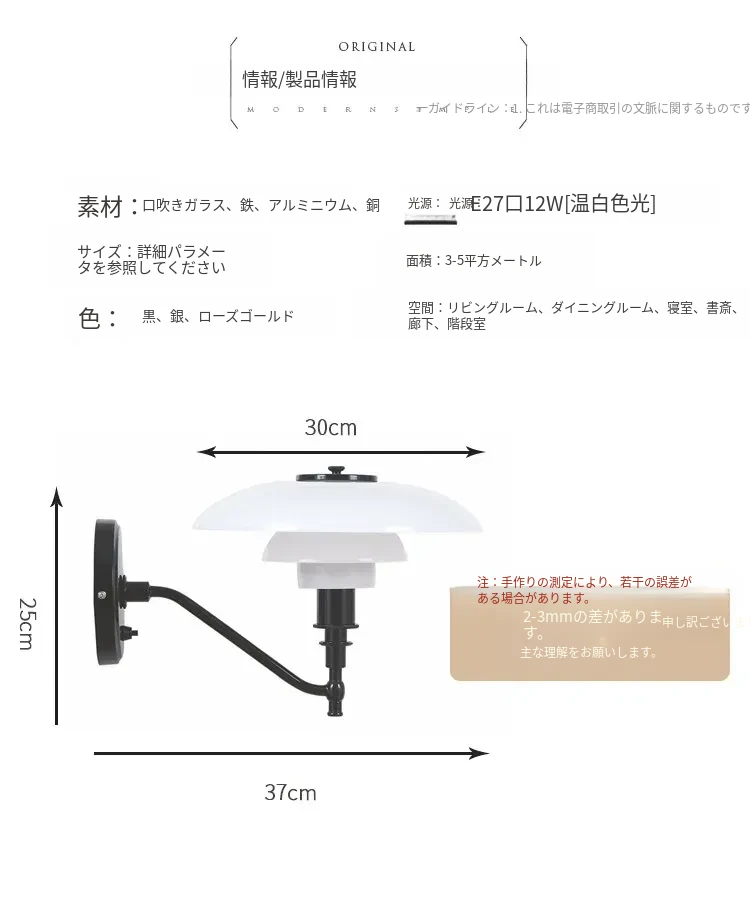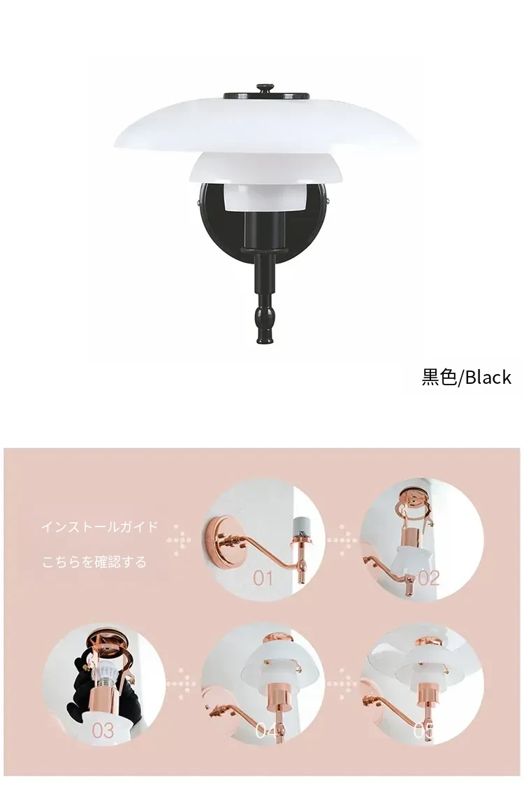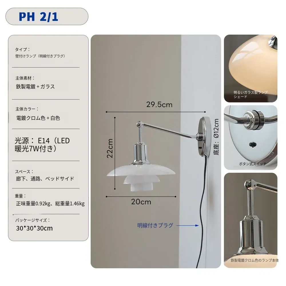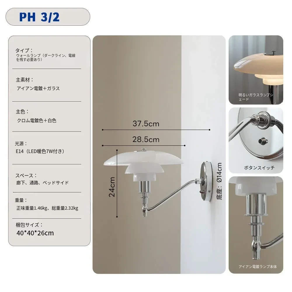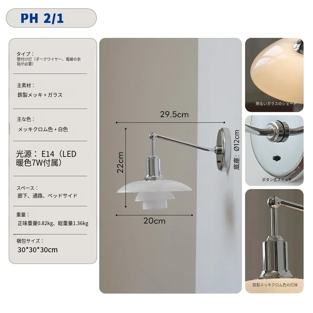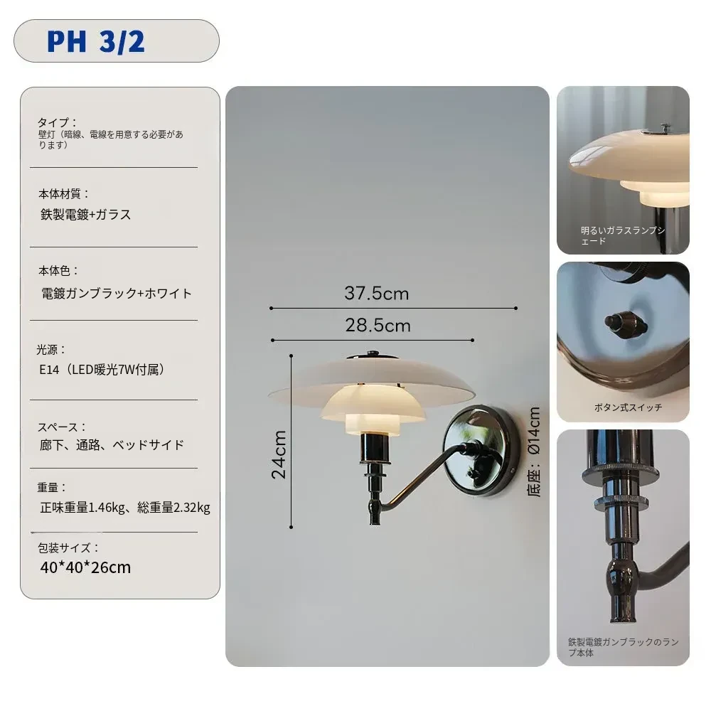北欧デンマークデザインのクラシックPH3壁灯 - シンプルで個性的なガラス製、寝室やベッドサイド、背景壁、ショールームに最適!