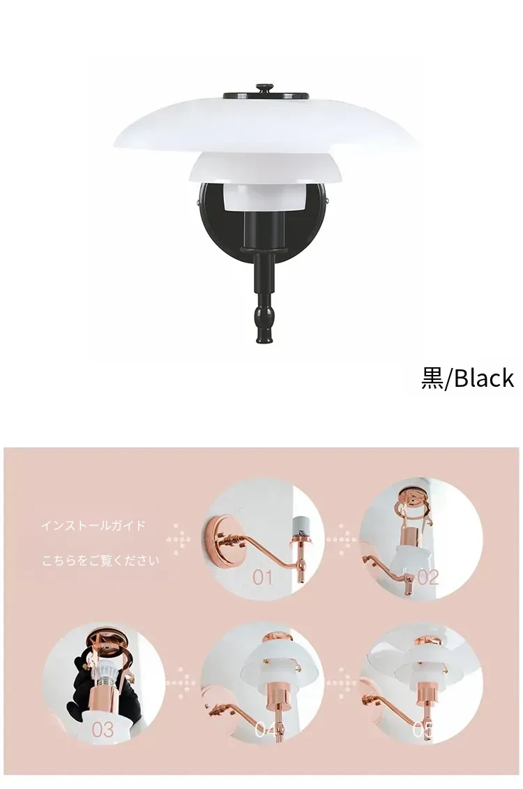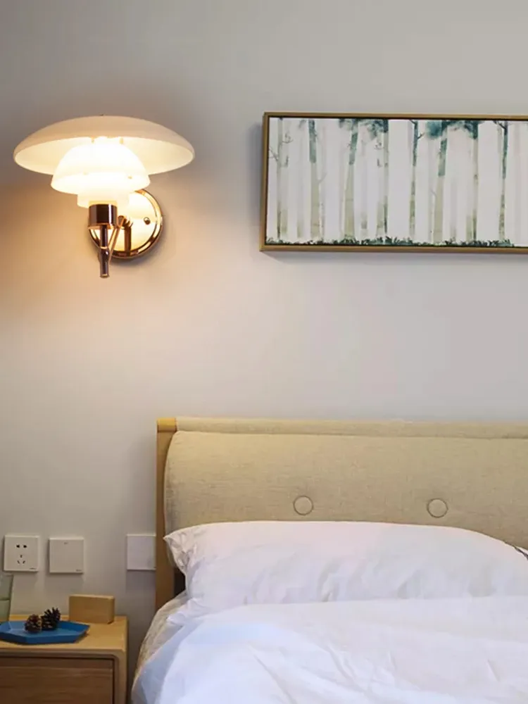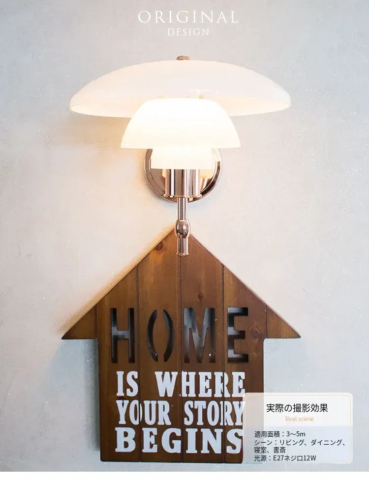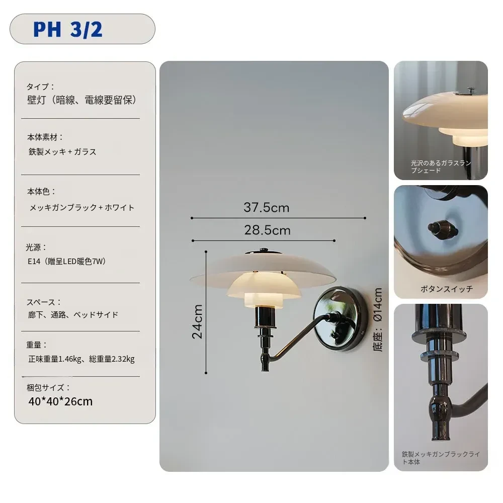 デンマークデザイナーによるクラシックなPH3壁灯 - 寝室や書斎、ベッドサイドに最適な個性的でミニマルなガラス背景灯具。洗練されたデザインで、空間に上質な雰囲気を演出します!