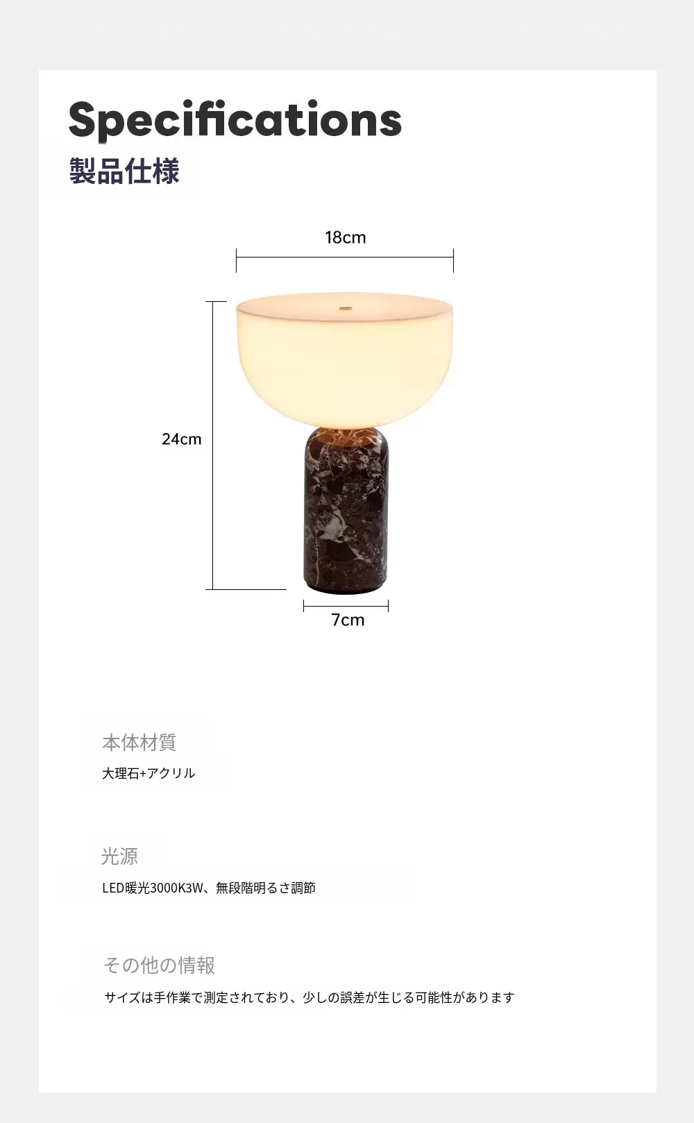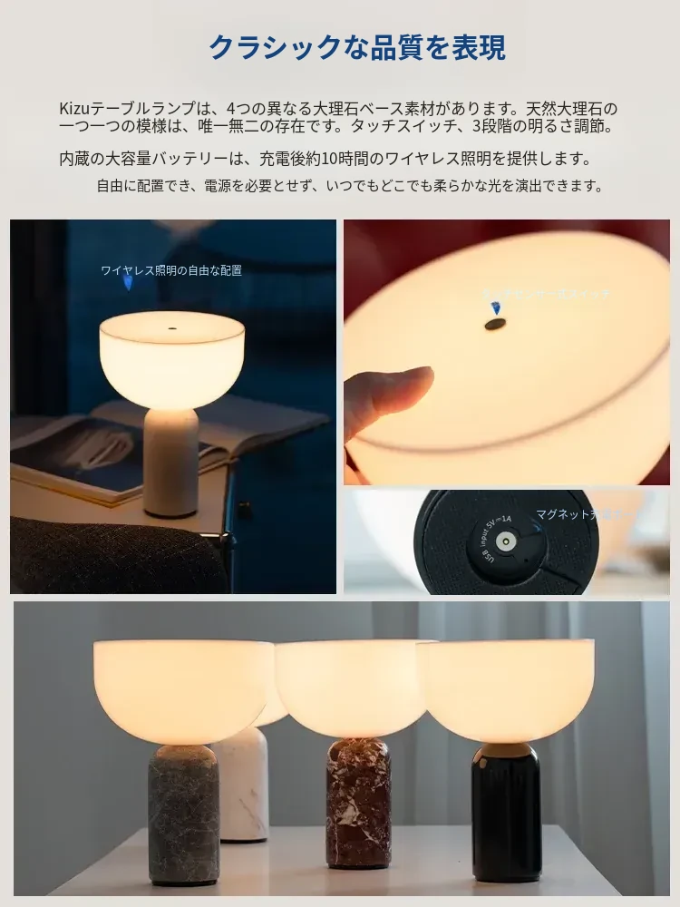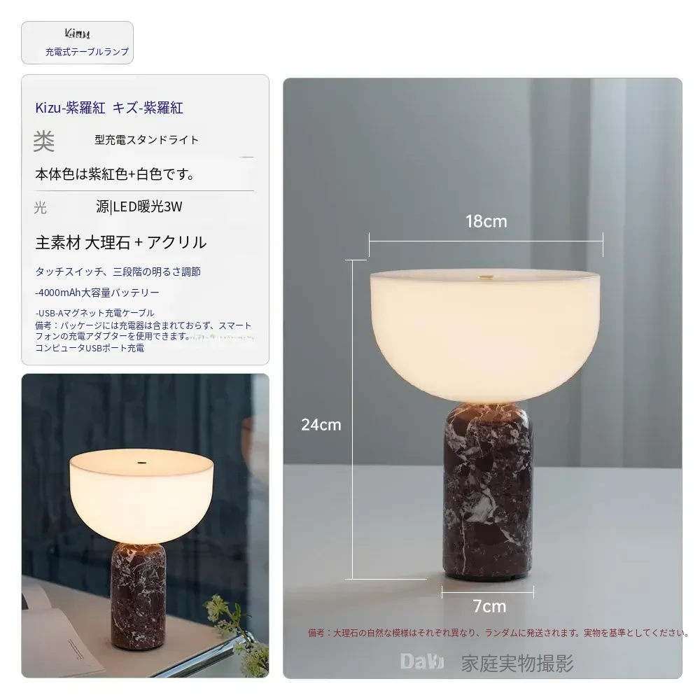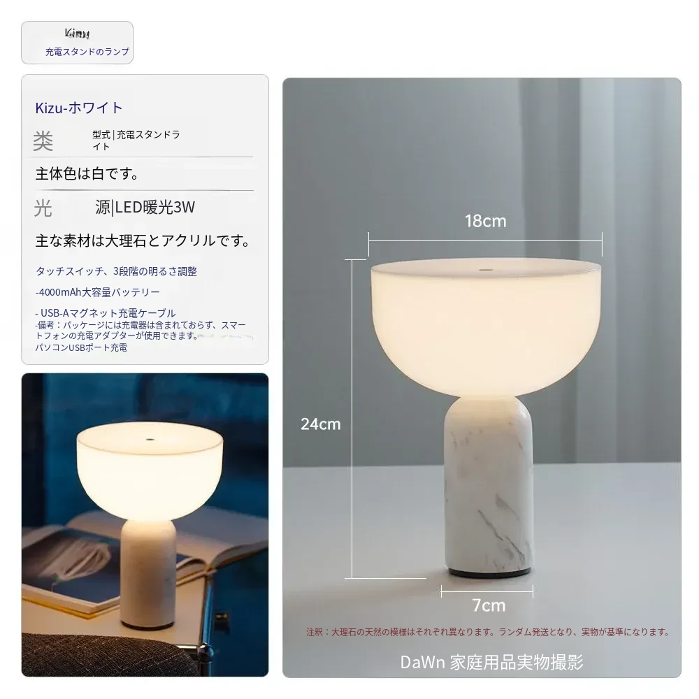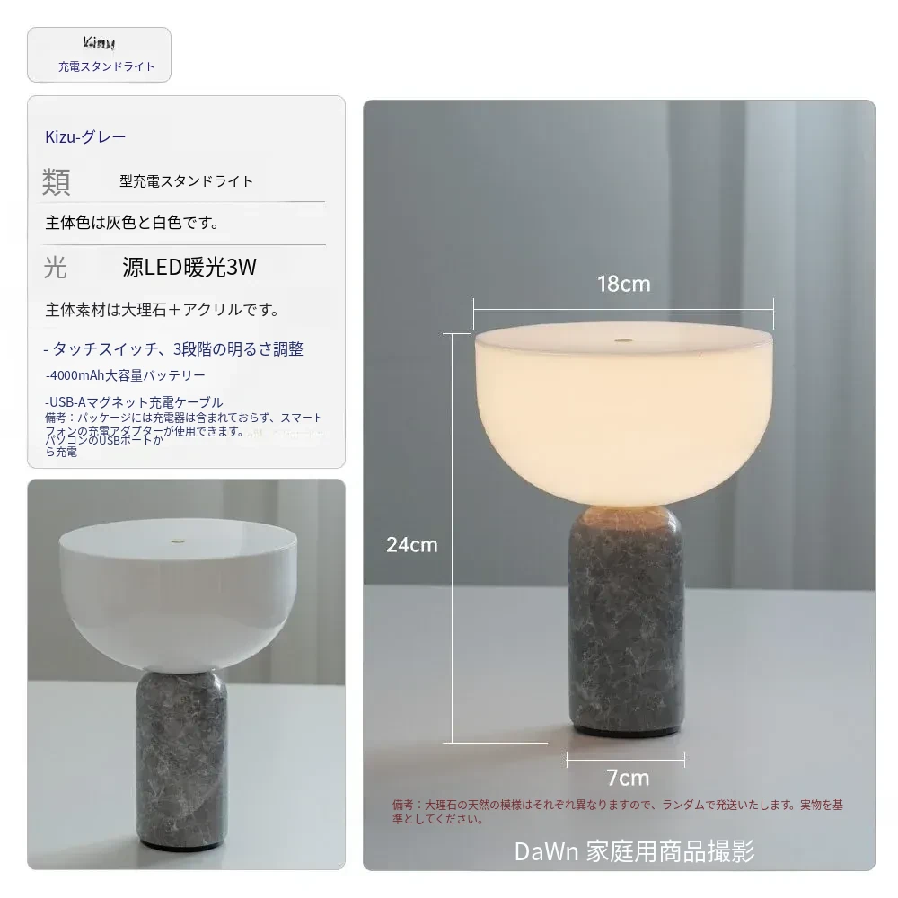 デンマーク製Kizu充電式テーブルランプ - アンティーク風のベッドサイドライト、リビングや書斎にぴったり!フレンチシックな高級大理石デザイン、タッチ操作で優雅な雰囲気を演出します。