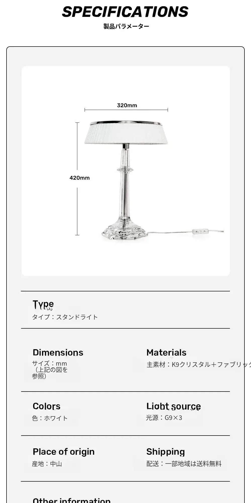 DAWNホーム/イタリアンラグジュアリー別荘 高級K9クリスタルベッドサイド書斎キャビネット&エントランス装飾テーブルランプ - 洗練されたデザインでお部屋を引き立てる一品!