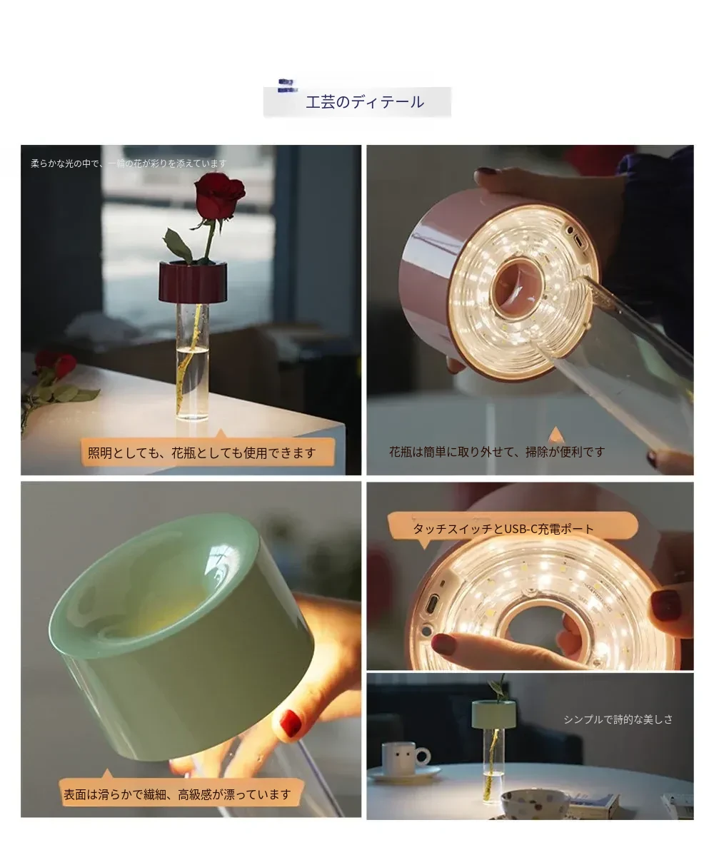 DAWNホーム/高級主寝室用ベッドサイドランプ・ラグジュアリーな雰囲気を演出するヴィンテージ風充電式フラワーベーステーブルランプ