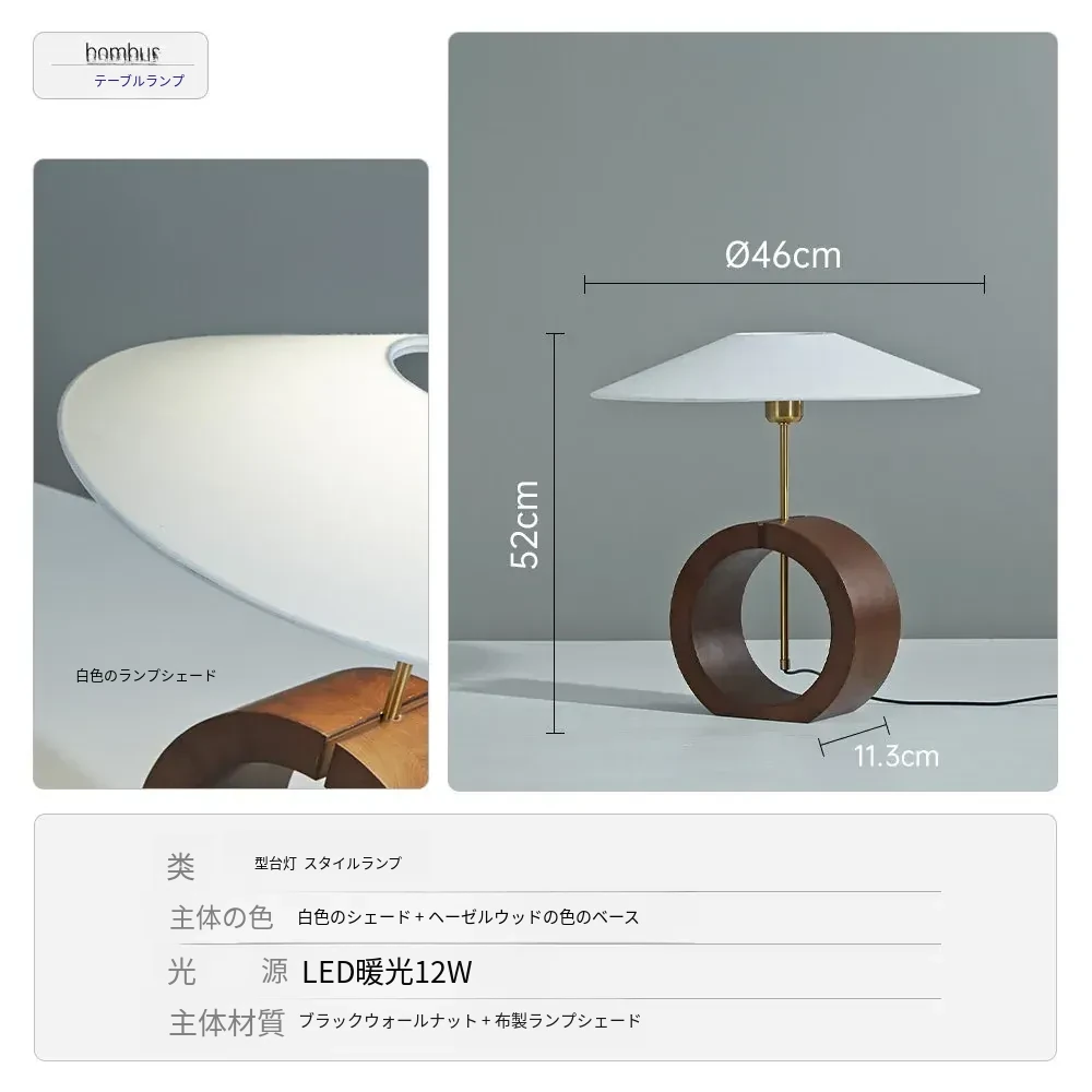【ウォールナット】白色シェード+黒色ベース/12ワット【輸出品質】
