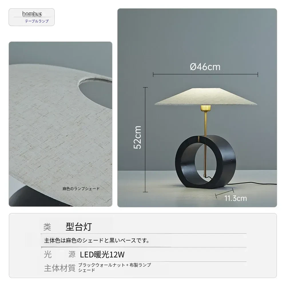 【ウォールナット】麻色シェード+黒色ベース/12ワット【輸出品質】