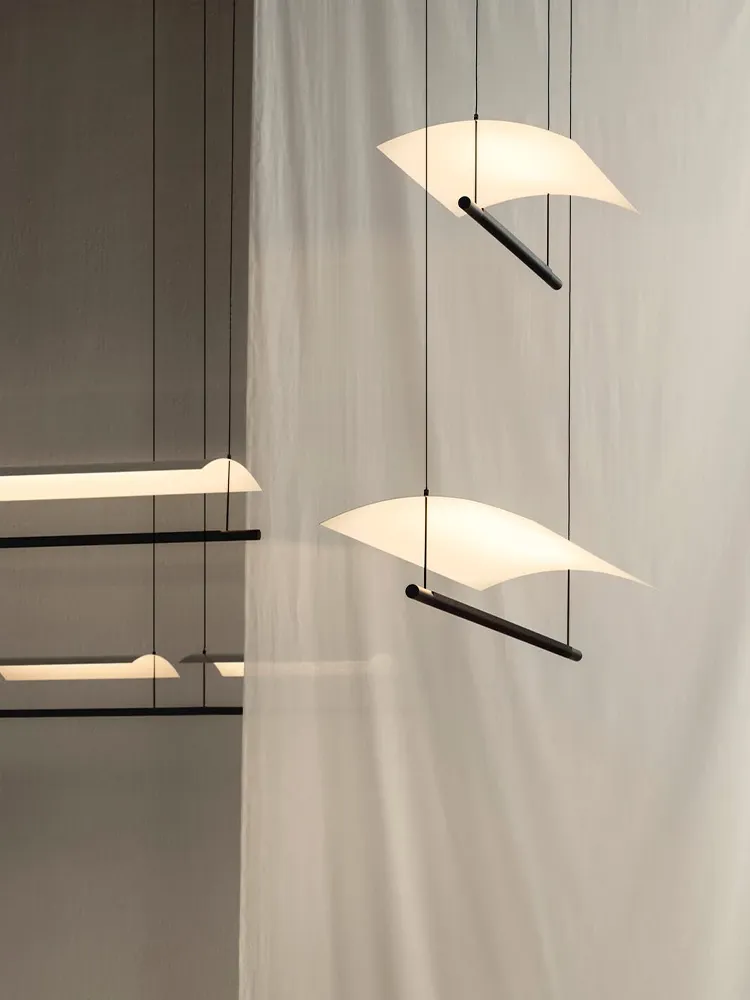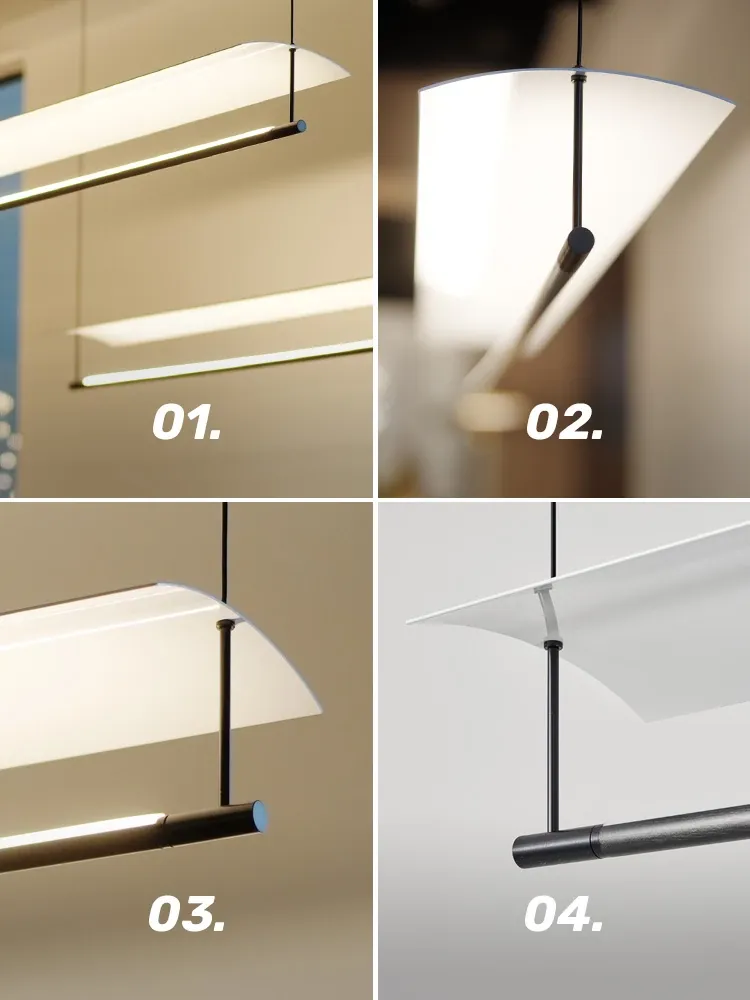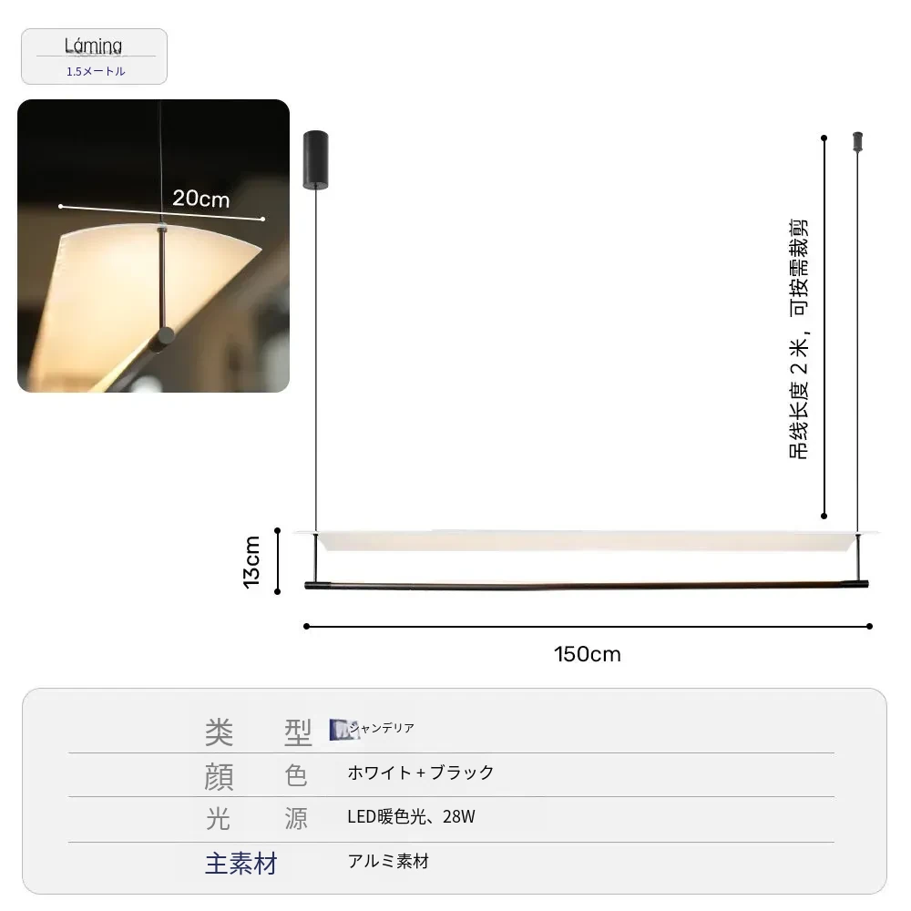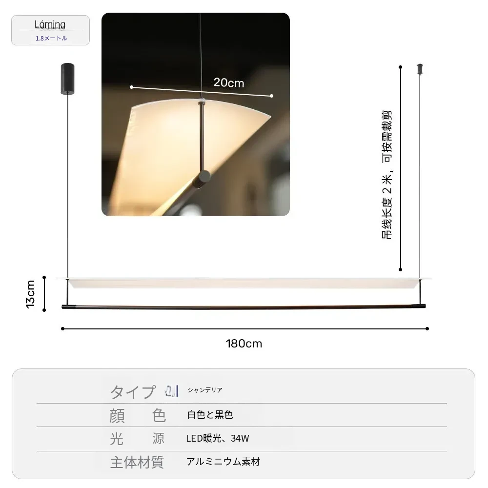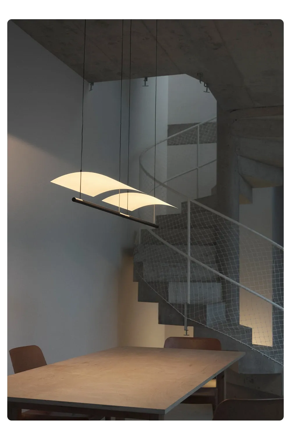 DAWNホーム/ミニマリストデザインの帆型ペンダントライト、ユニークなアート感溢れるアイランドテーブル用、和の侘び寂びスタイル、一字型ライトでおしゃれなダイニングを演出!