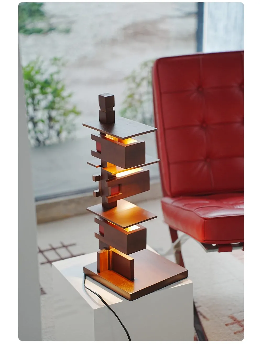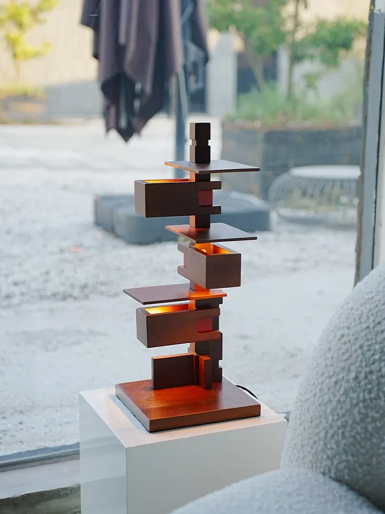 DAWNホーム/レトロデザインの高級感あふれる木製テーブルランプ - リビングルームやTVキャビネットに最適なスタイリッシュなアクセント!