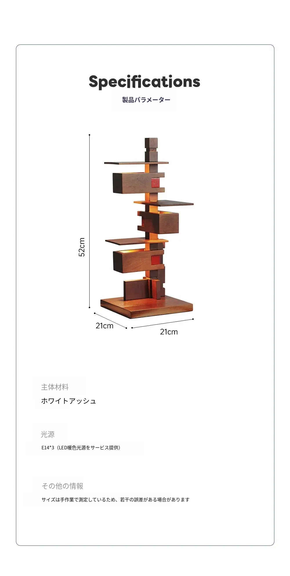 (ホワイトアッシュ)ナチュラル-高さ52cm 輸出品質