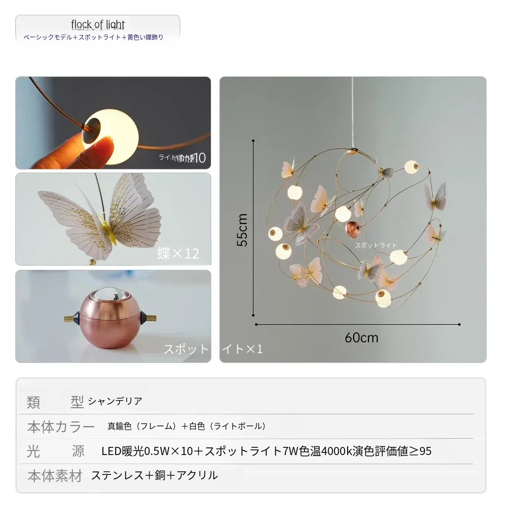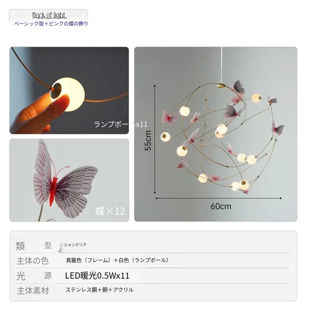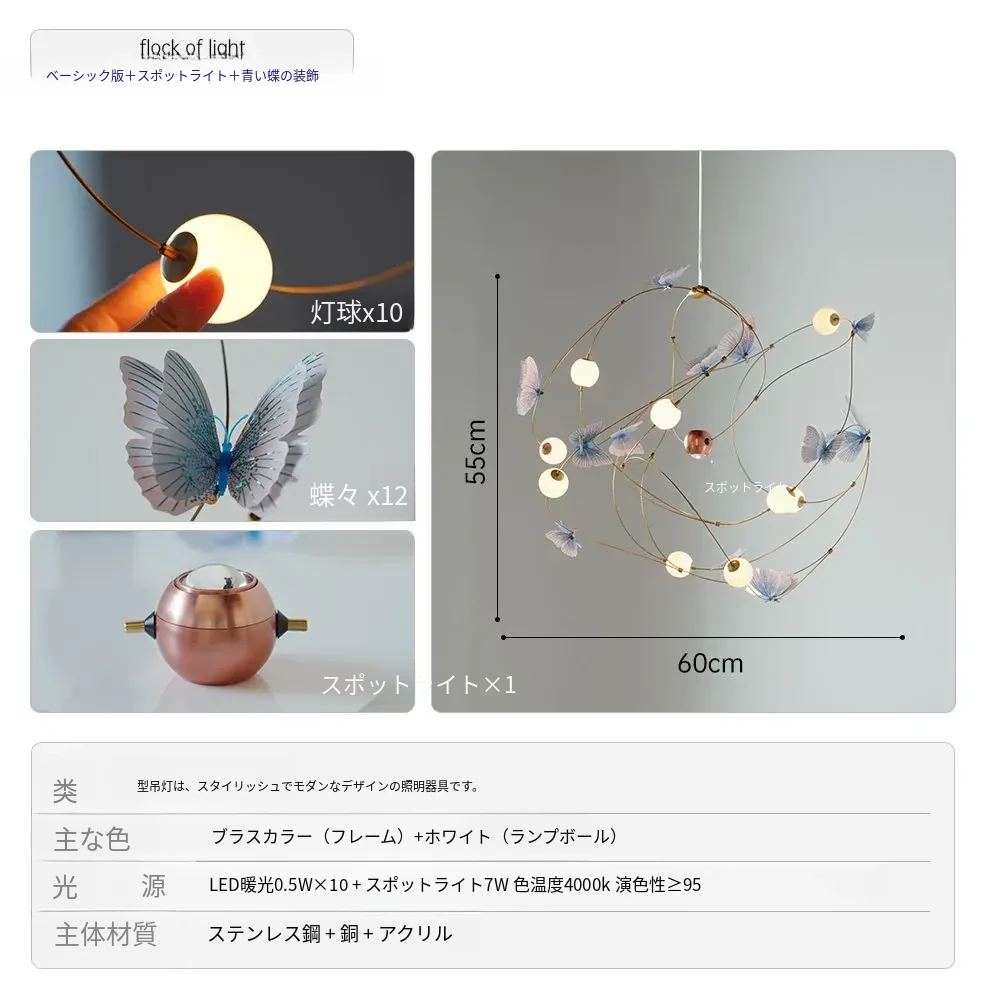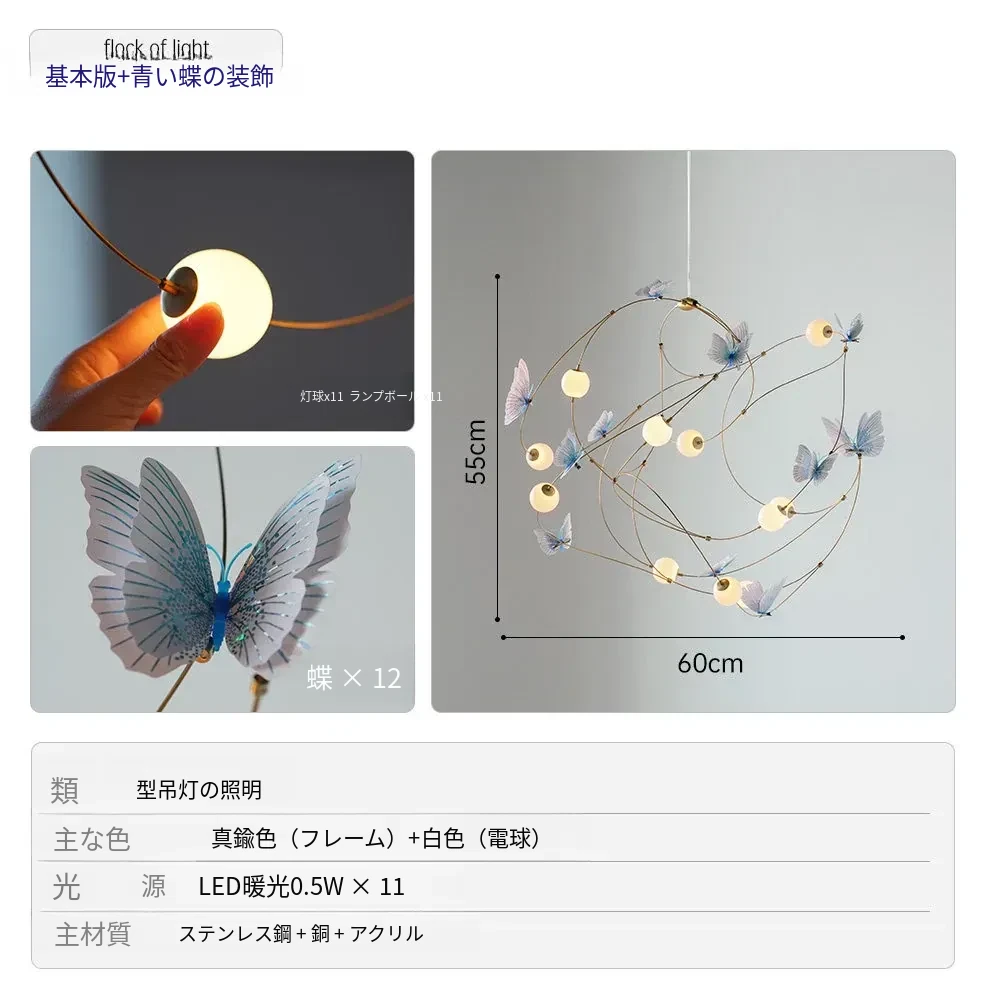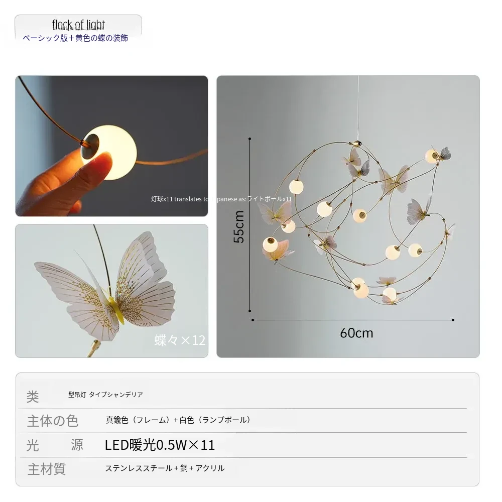 DAWNホーム/クリエイティブレストラン用吊り下げライト 高級感溢れるモダンミニマリストデザイン 子供部屋やアパレルショップに最適な蝶の形状の照明器具