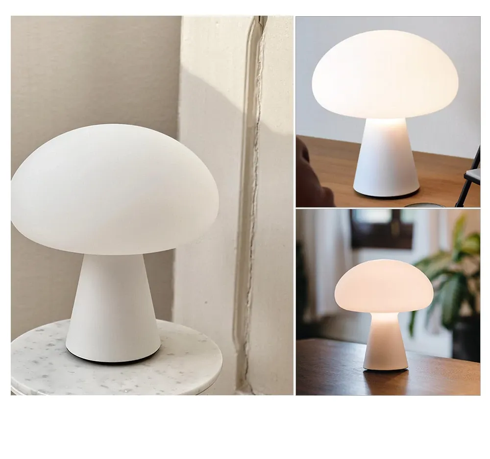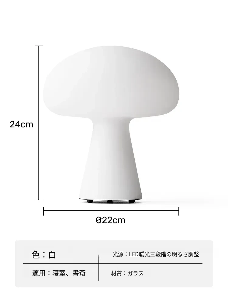 DAWNホーム 北欧スタイルのシンプルで充電可能な調光ガラスきのこテーブルランプ 書斎や寝室にぴったりのムード照明!魅力的なデザインでお部屋を演出します。