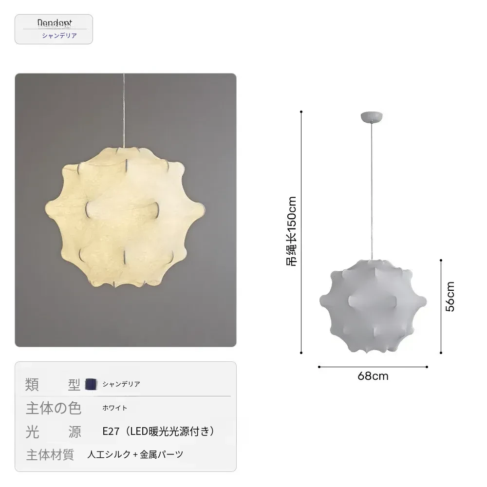 DAWNホーム/ヴィンテージ風シャンデリア - 茶室の雰囲気を演出する高級感あふれる侘寂デザイン!寝室やダイニングにぴったりなシルクランプ。おしゃれな空間を作り出します!