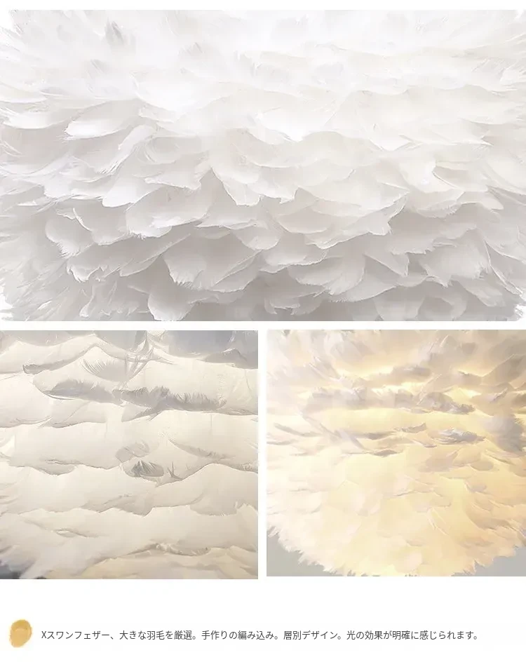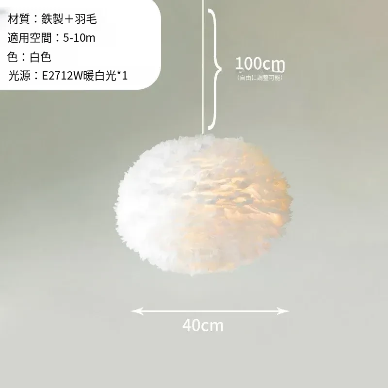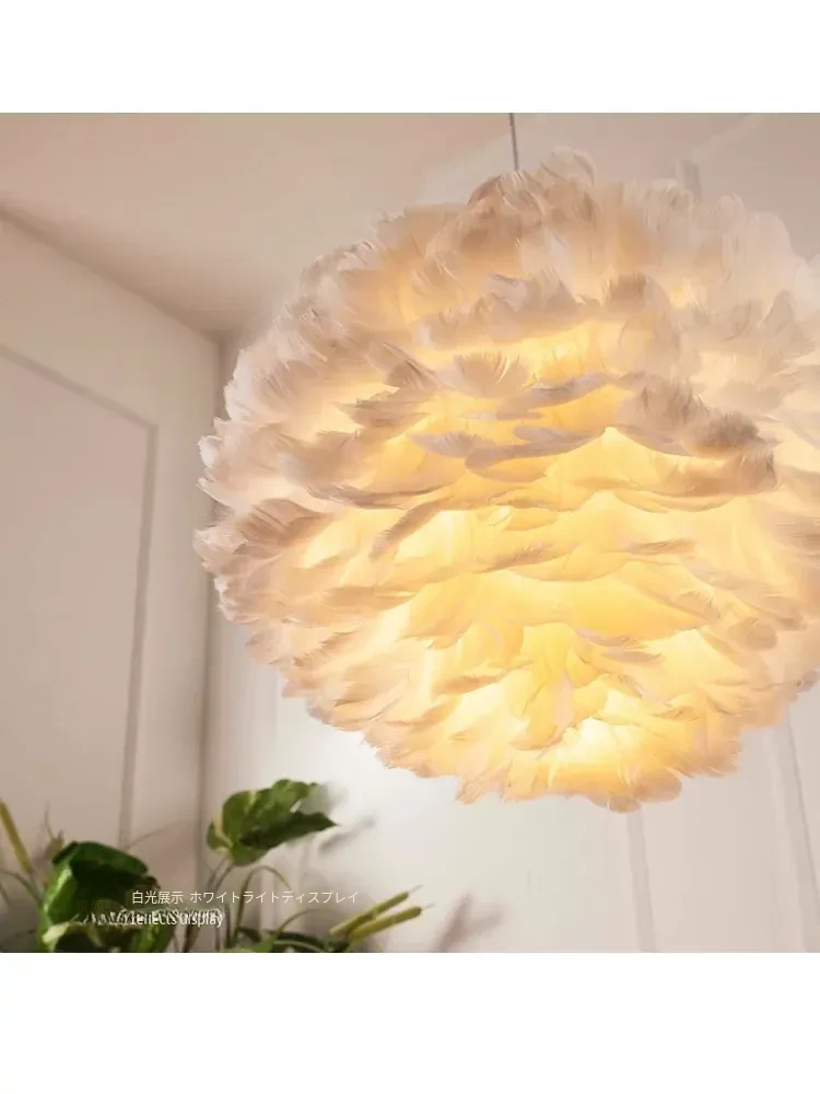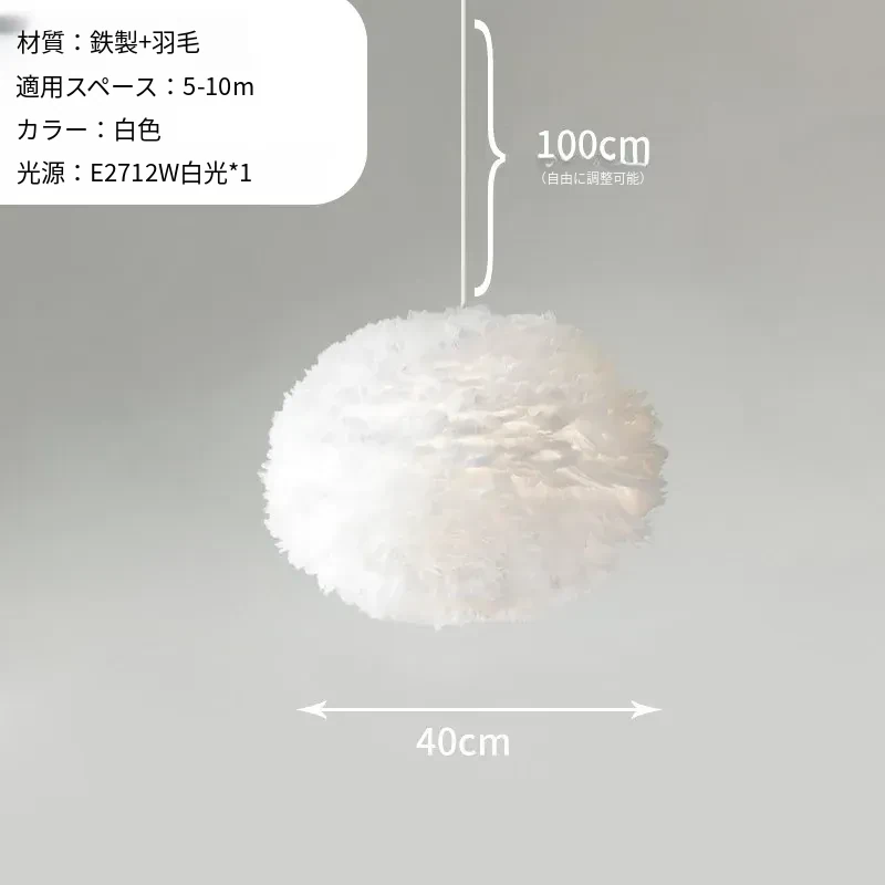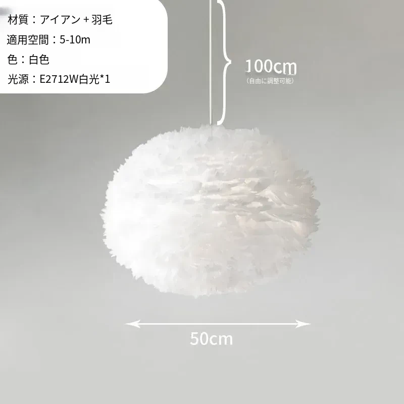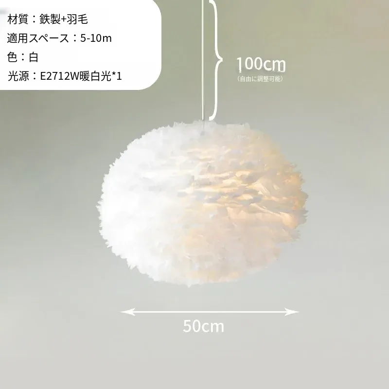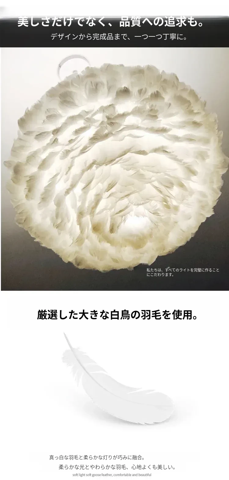 高級感あふれる羽毛シャンデリア - 創造的で個性的なフレンチスタイルのアートライト。円形デザインで、子供部屋や寝室にぴったりのクリーミーな風合いの軽やかなラグジュアリーを演出します。