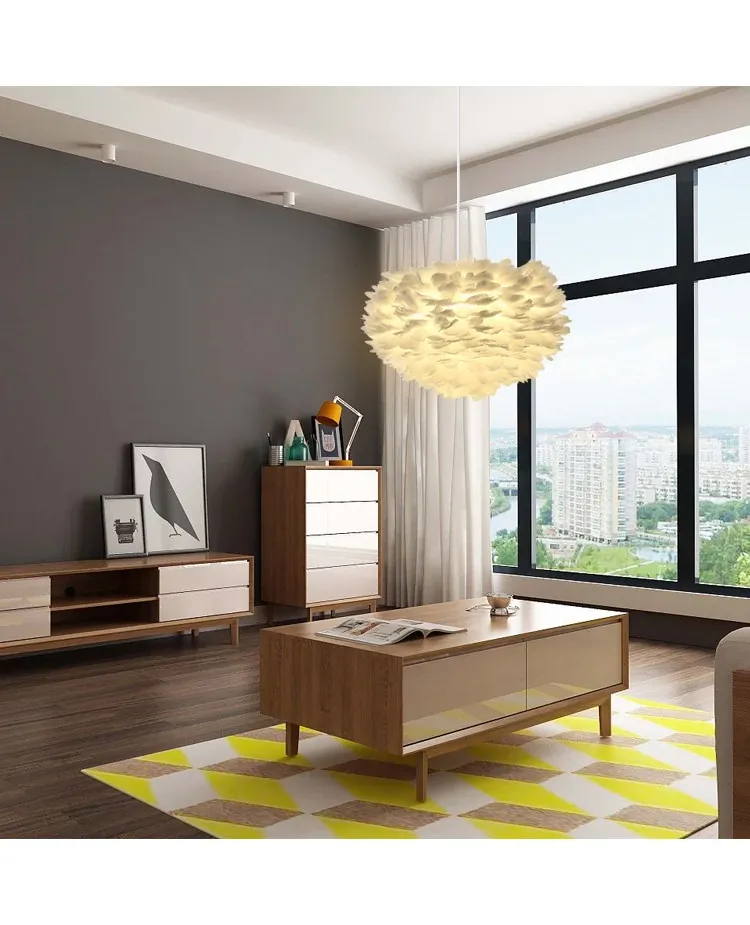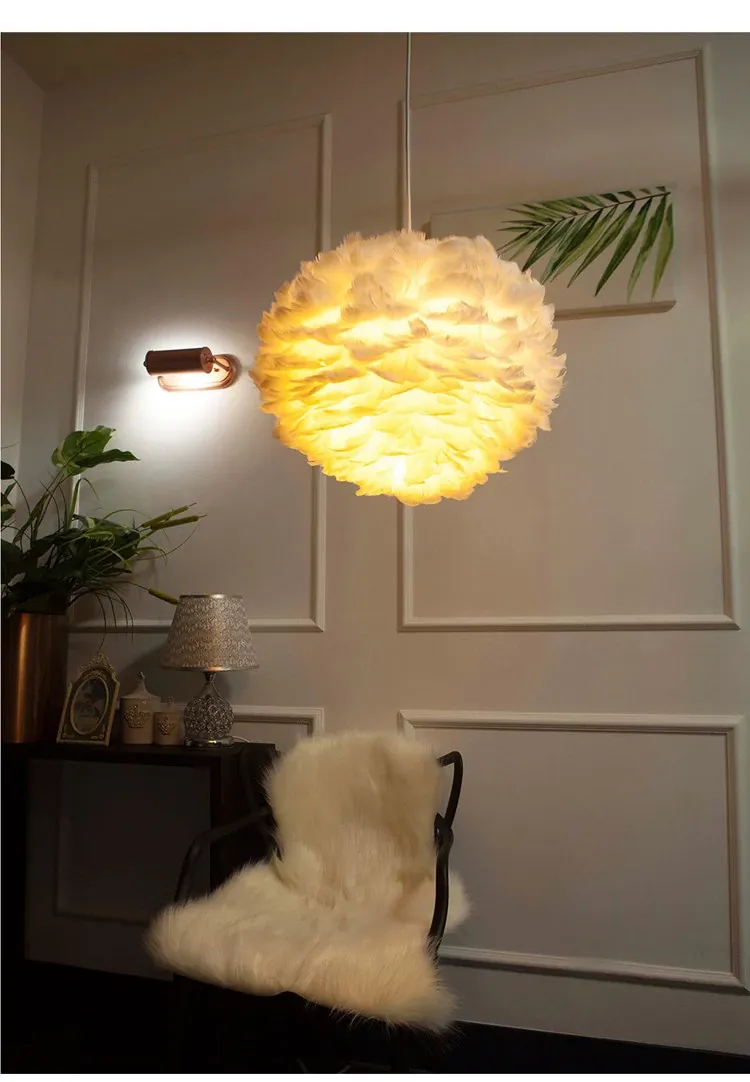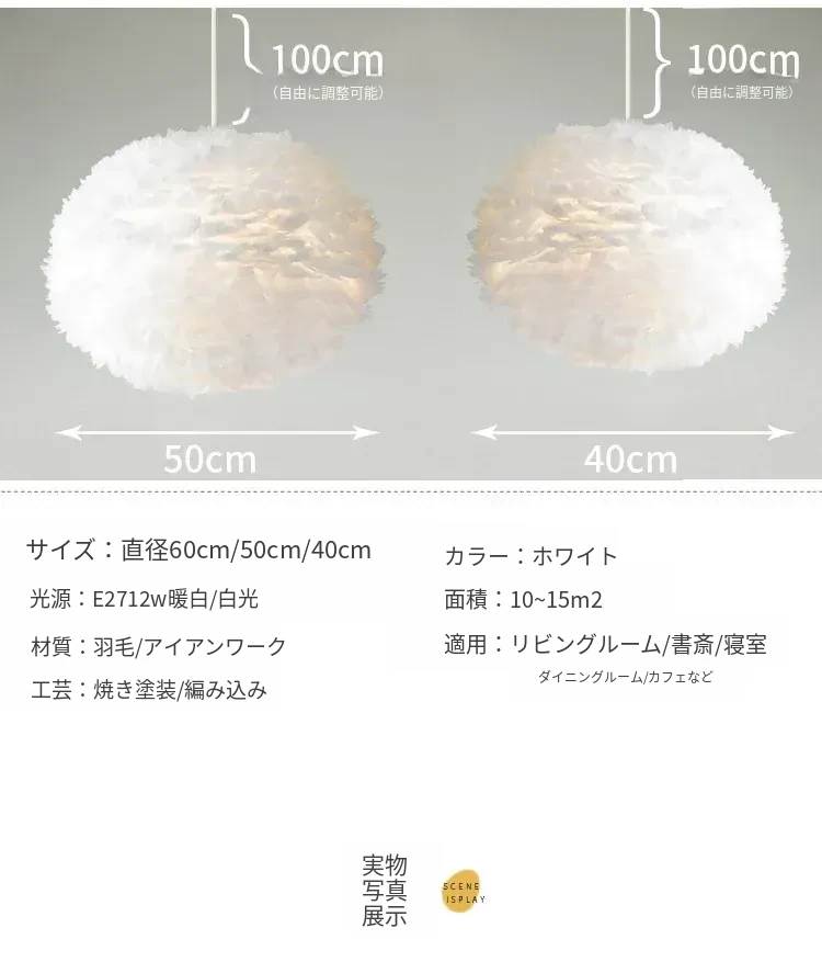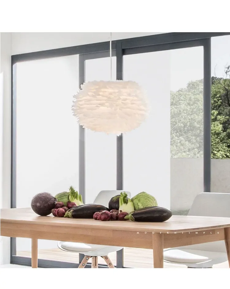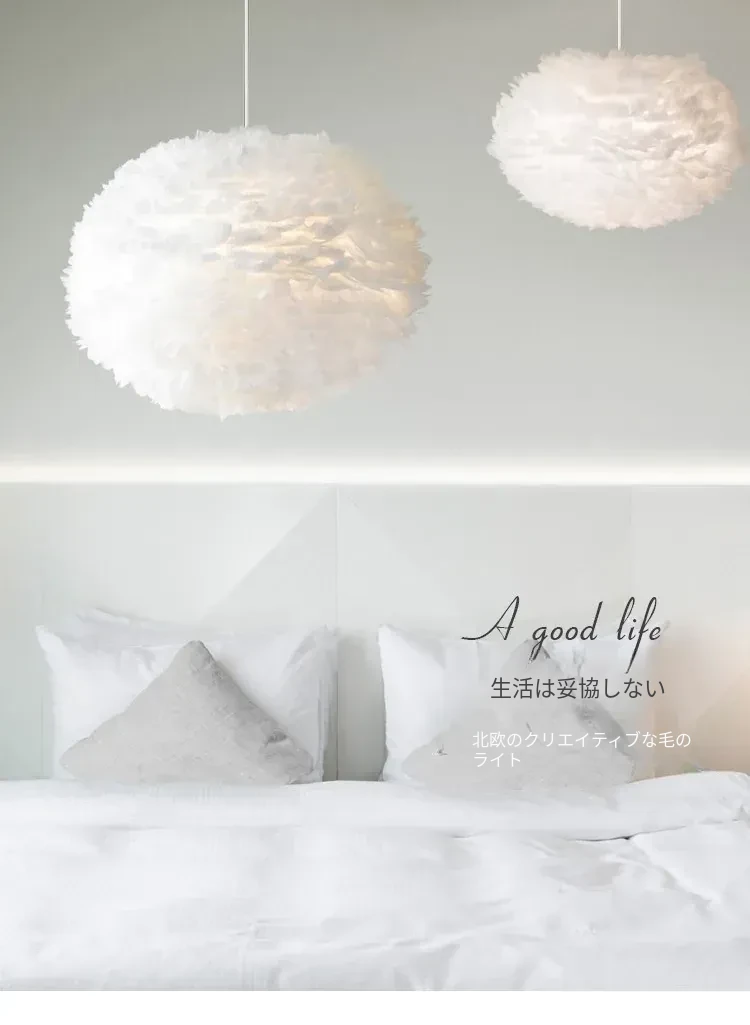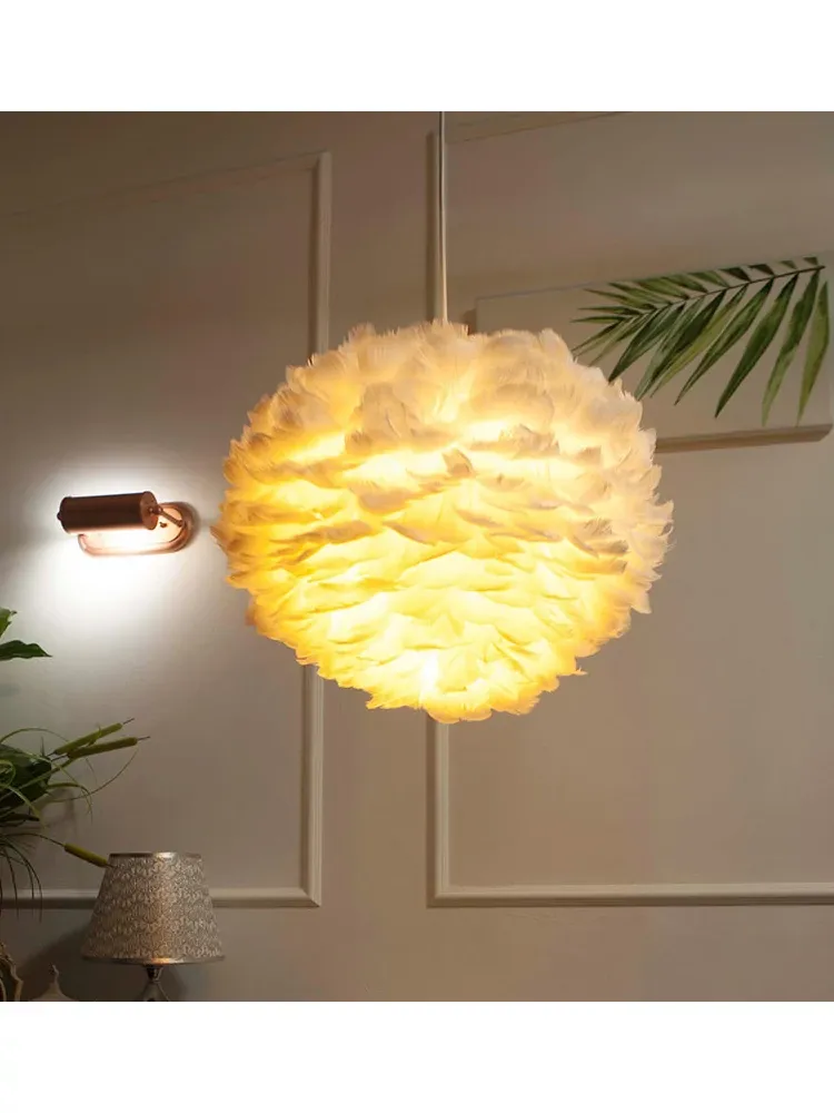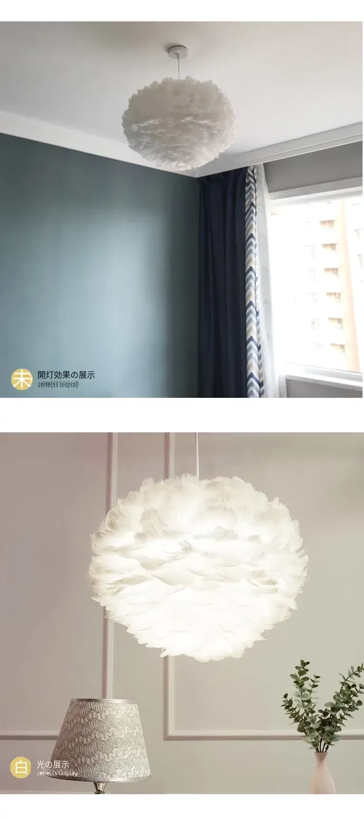 高級感あふれる羽毛シャンデリア - 創造的で個性的なフレンチスタイルのアートライト。円形デザインで、子供部屋や寝室にぴったりのクリーミーな風合いの軽やかなラグジュアリーを演出します。