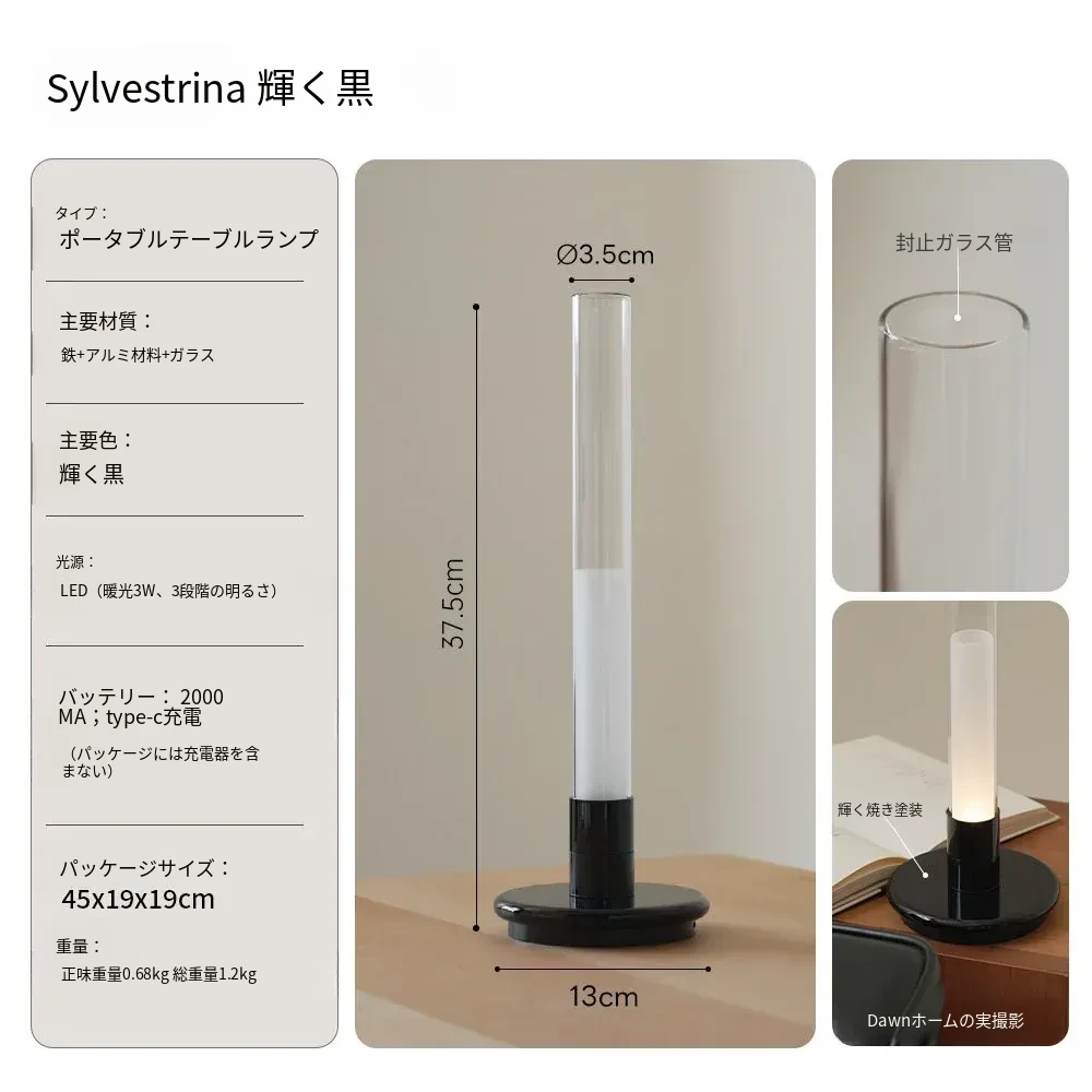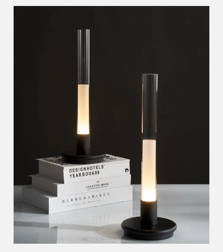 北欧風のミニマリストデザイン!充電式調光ガラスチューブテーブルランプ - おしゃれな寝室やダイニングテーブルにぴったりの雰囲気灯!
