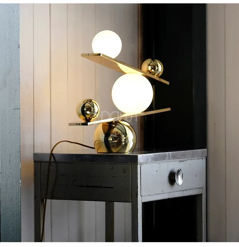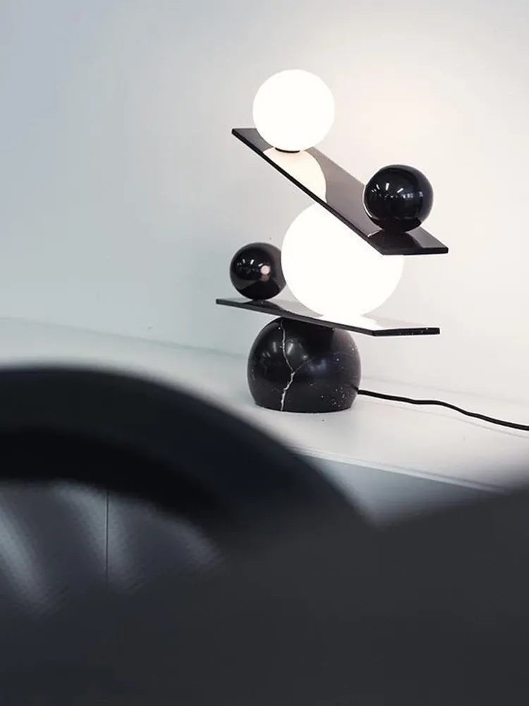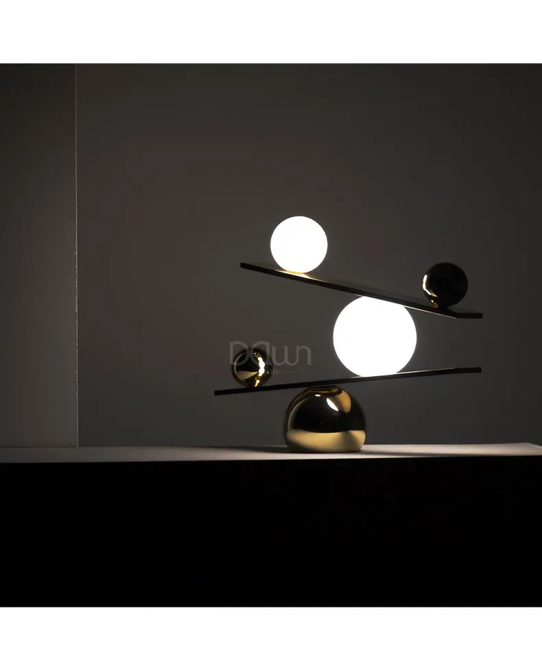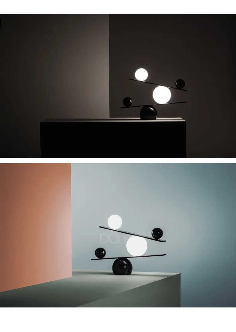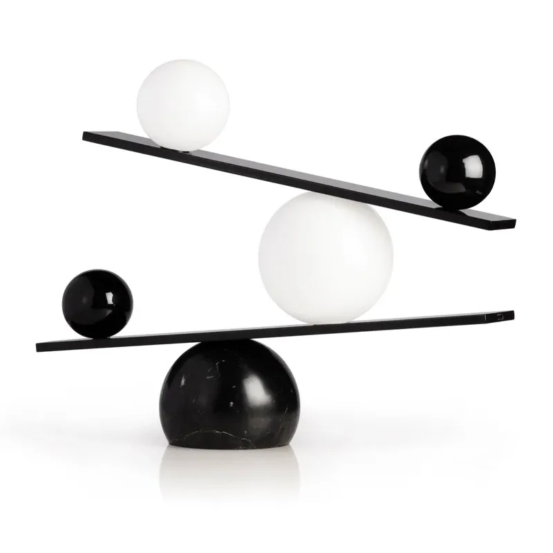 シンプルで個性的なデザインのバランステーブルランプ - 北欧風のモダン照明、リビングルームやモデルハウスにぴったりのクリエイティブなデザイナータブルランプ!