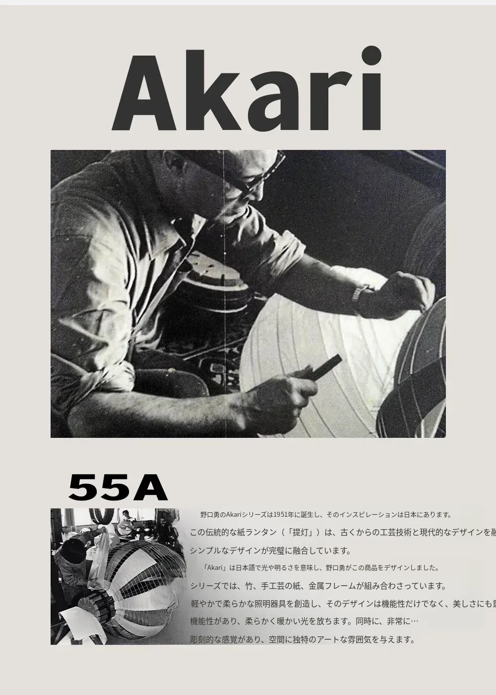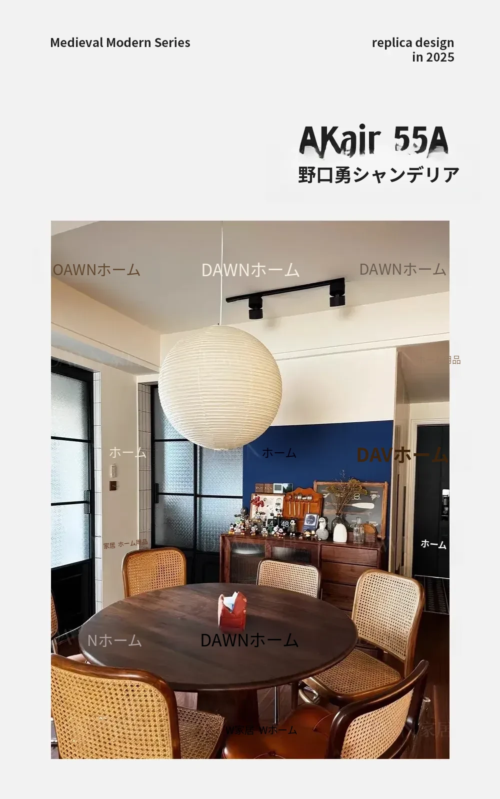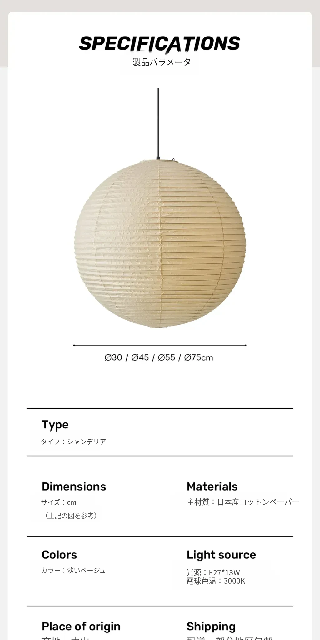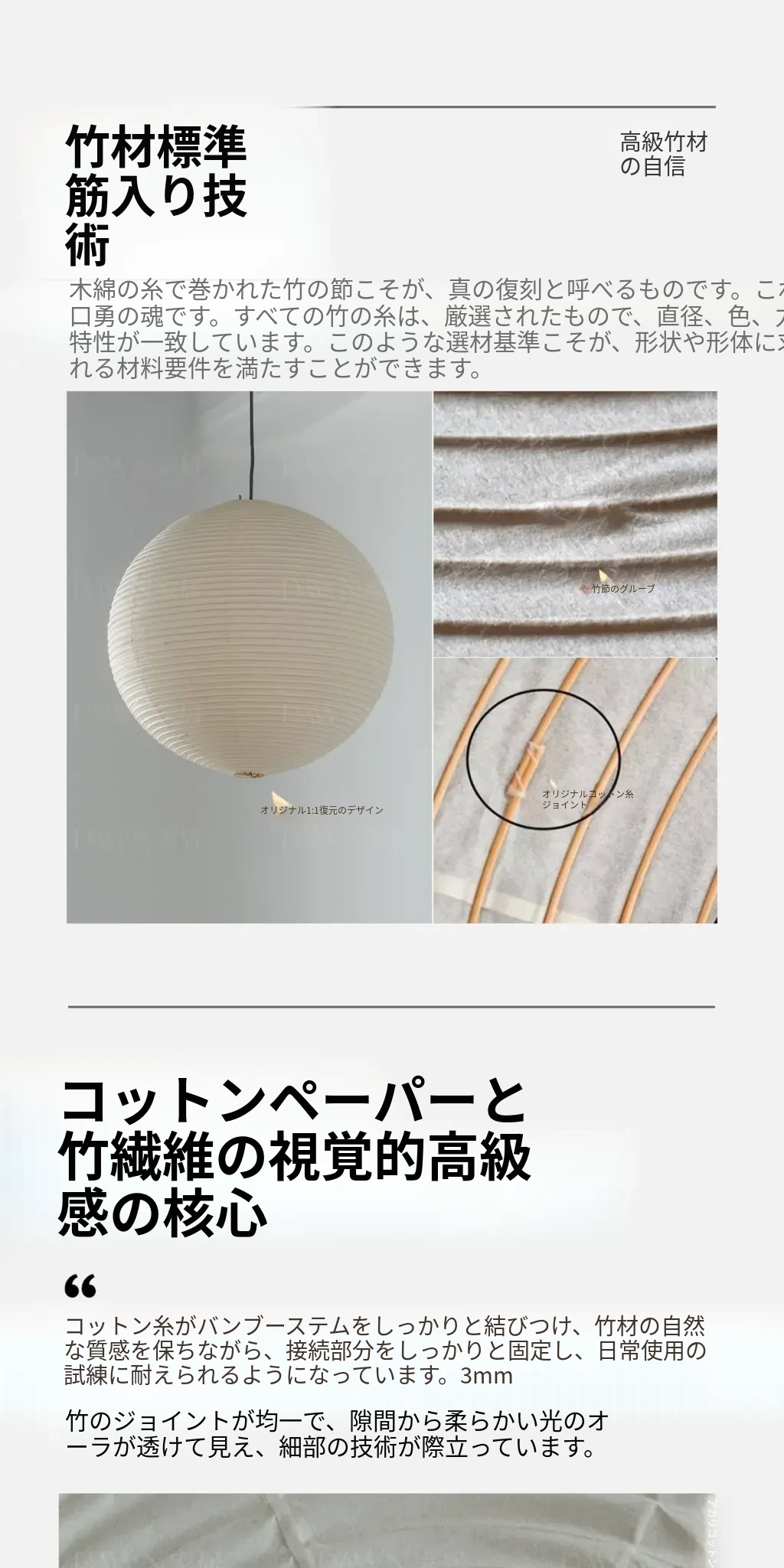 野口勇デザインの55A竹編みシャンデリア - 和の心を感じる現代的な丸型ライト。リビングやダイニング、主寝室や茶室に最適なシンプルで洗練されたインテリアアイテム。民宿にもぴったり!