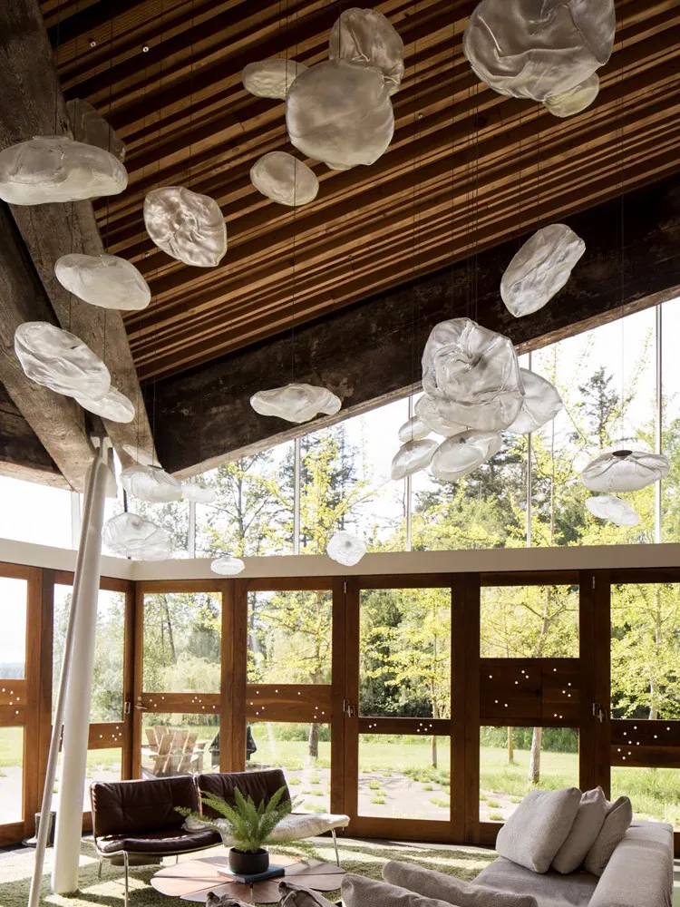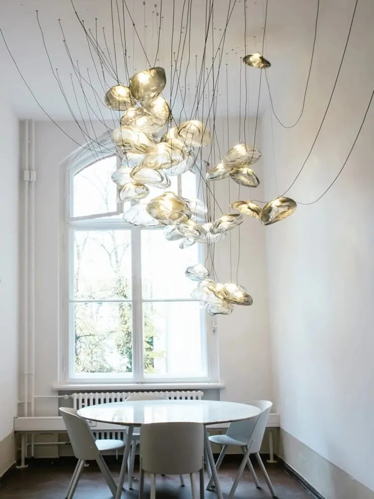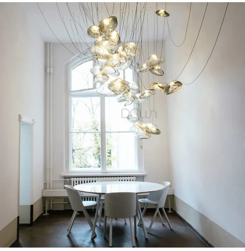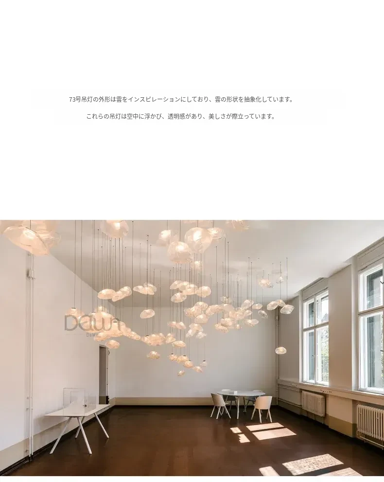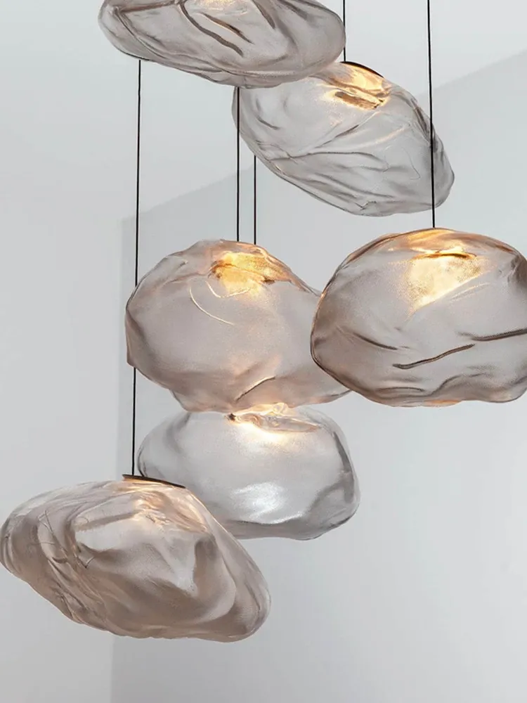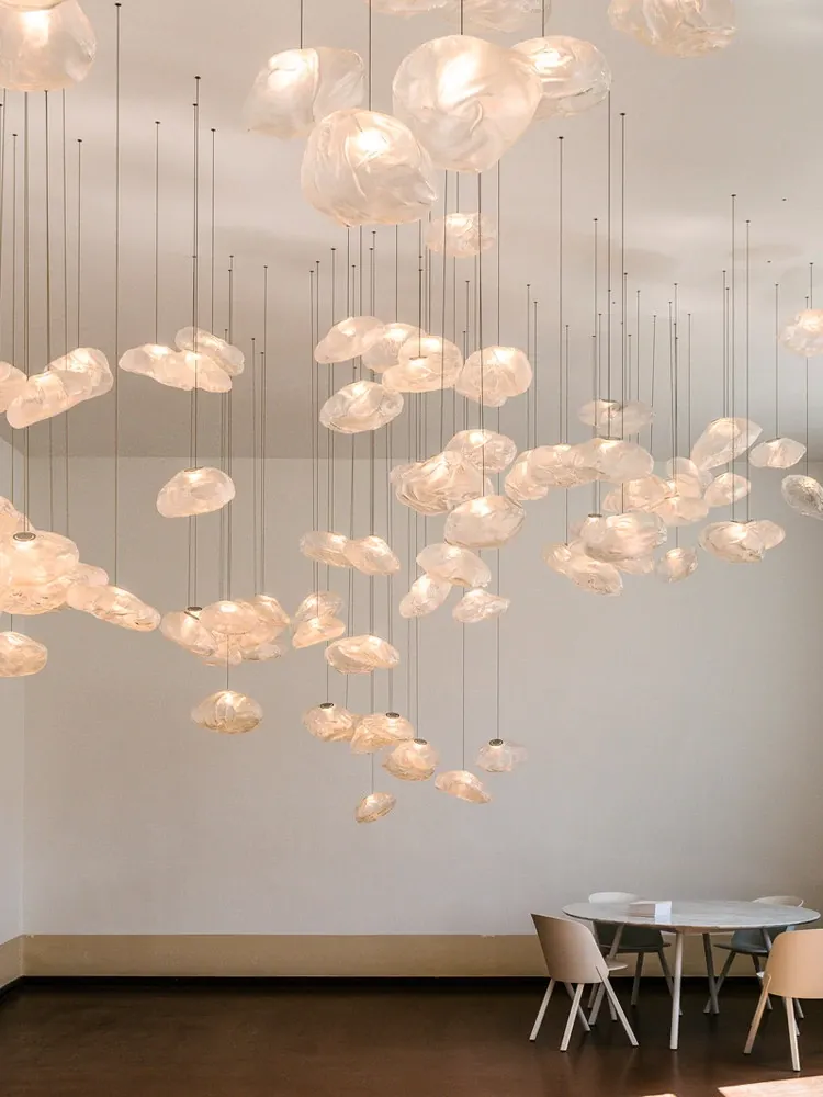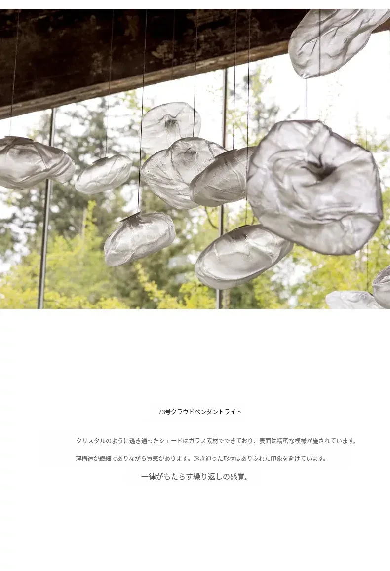 北欧風シンプルデザインのリビングライト|デザイナーのクリエイティブな雲型アートガラスペンダント|レストランやバーに最適な個性的な照明で、あなたの空間に華やかさをプラス!