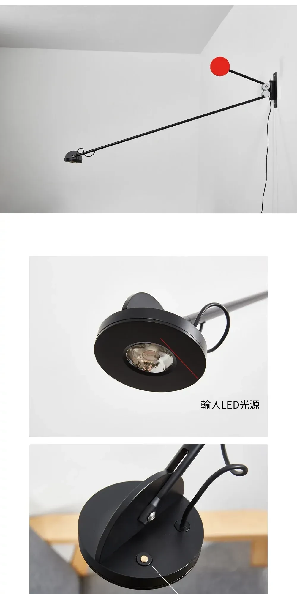 北欧風ミニマリストデザインの長杆壁灯 - モダンでシンプルな寝室用調光可能なデスクランプ、リビングやオフィスにも最適!