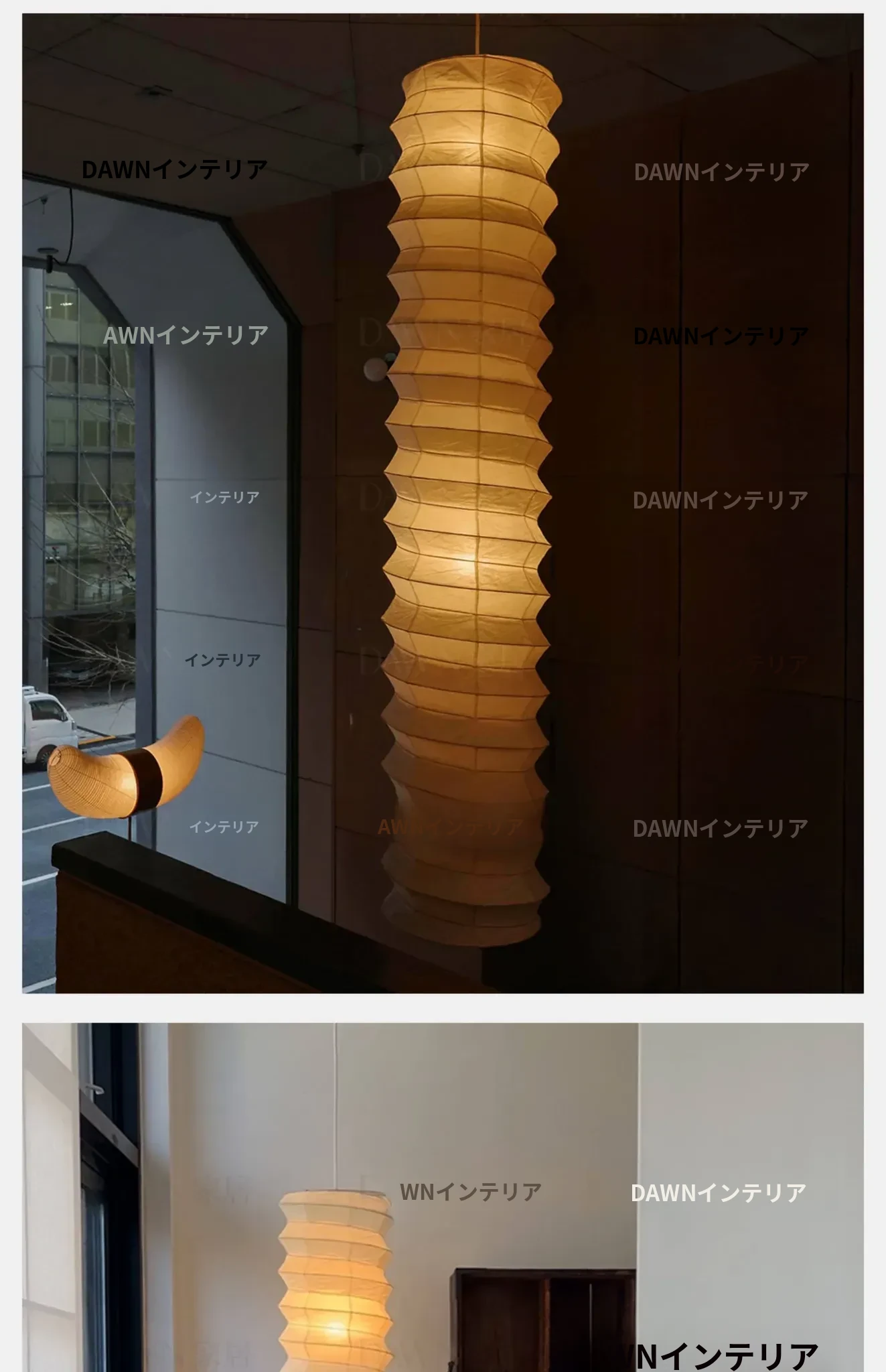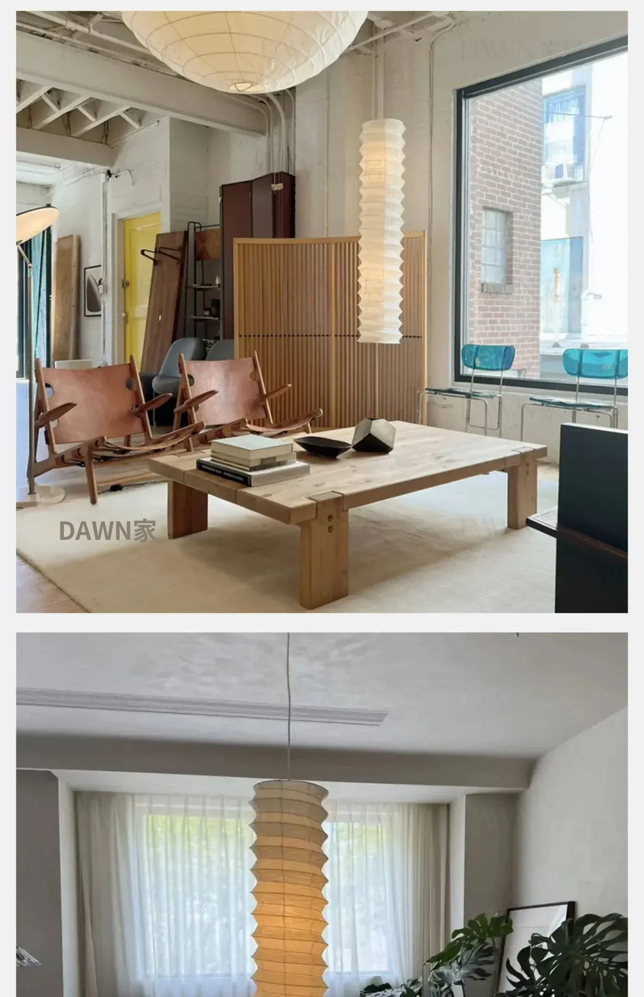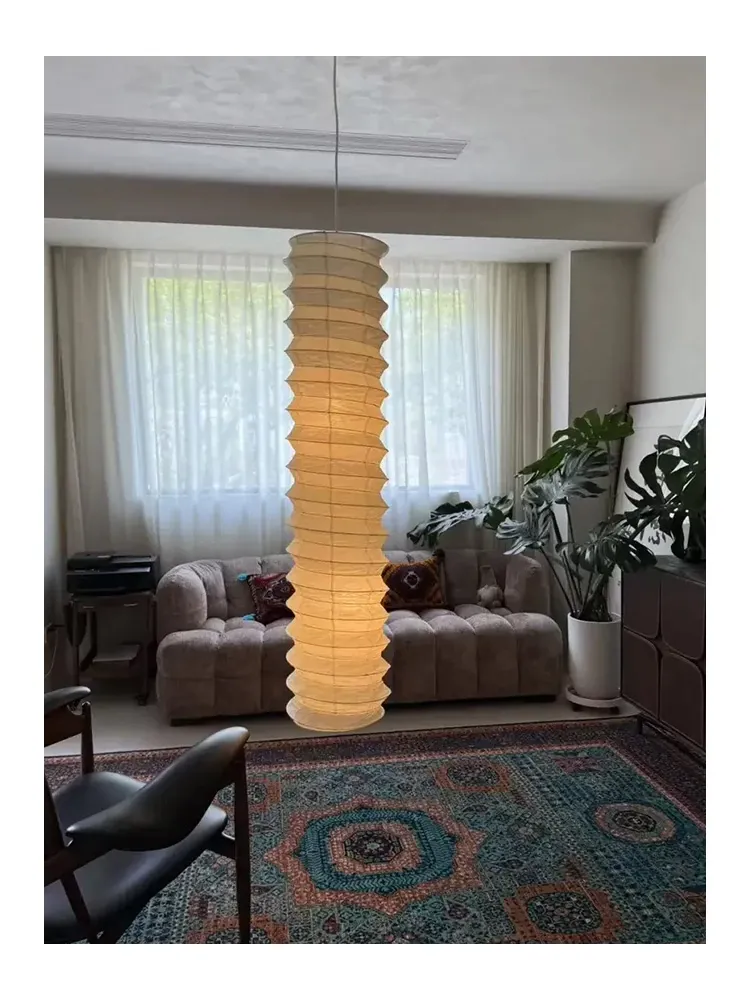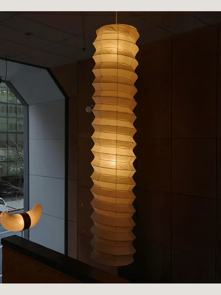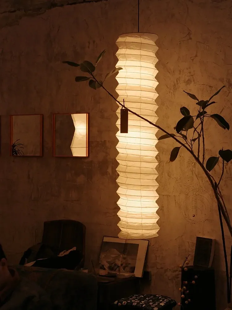 野口勇デザインの31N和式宣紙使用!中古風のロフト二重空間にぴったりな侘寂スタイルの長方形吊り下げランプ。洗練されたインテリアで、あなたのリビングを特別な空間に演出します!