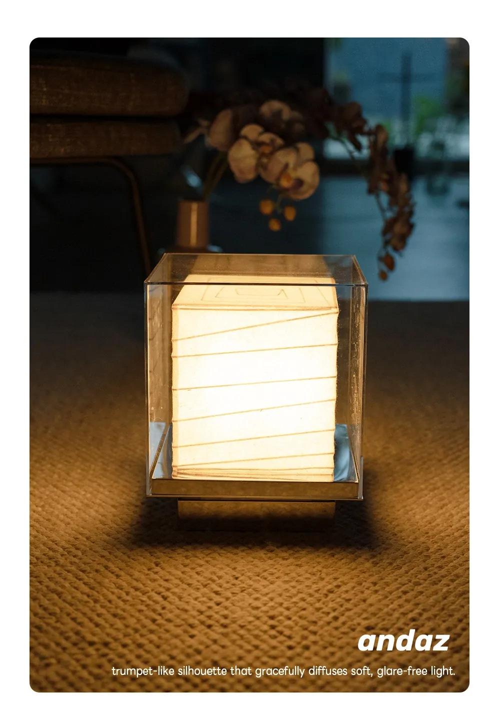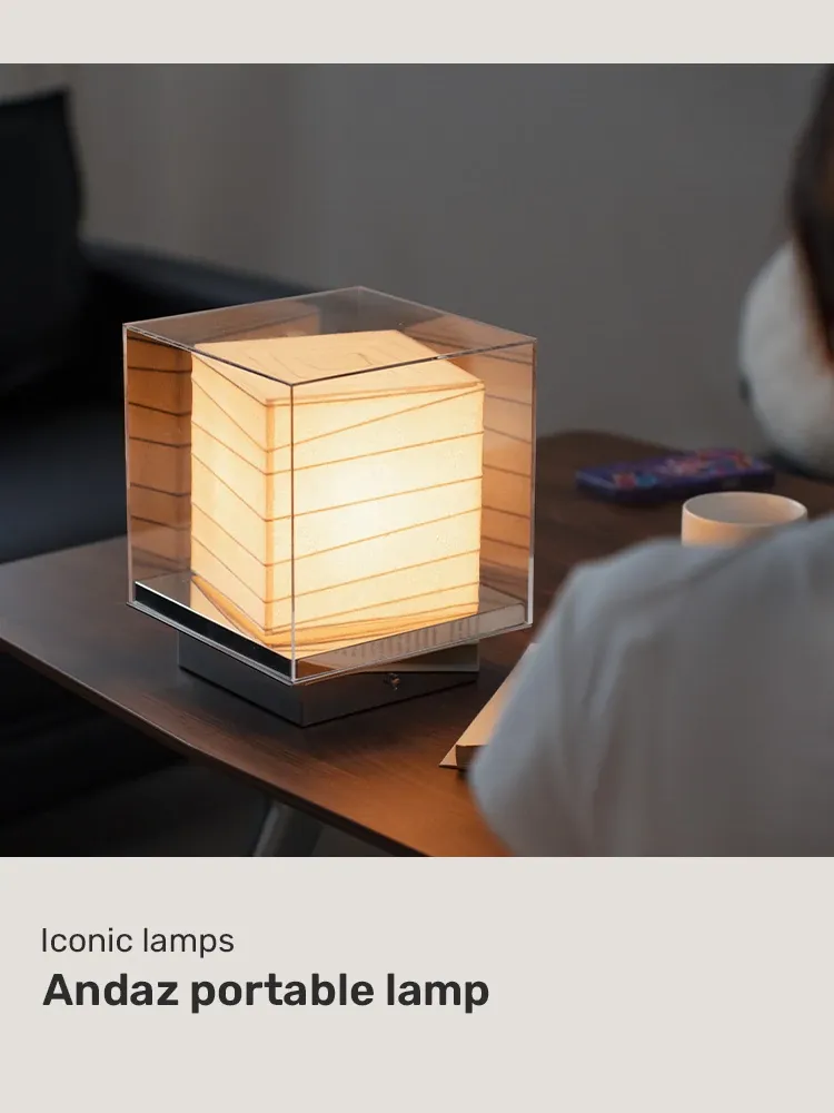 野口勇デザインのアンティーク風日本式テーブルランプ - 寝室やリビングにぴったりの雰囲気を演出!充電式で便利な小型ランプ、書斎でも活躍します。