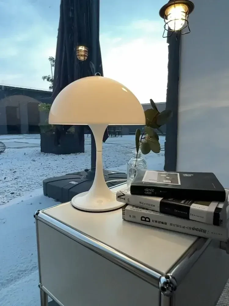 デンマークのクラシックなマッシュルームテーブルランプ - ヴィンテージでラグジュアリーなデザイン、主寝室に最適な雰囲気を演出する充電式ライト。